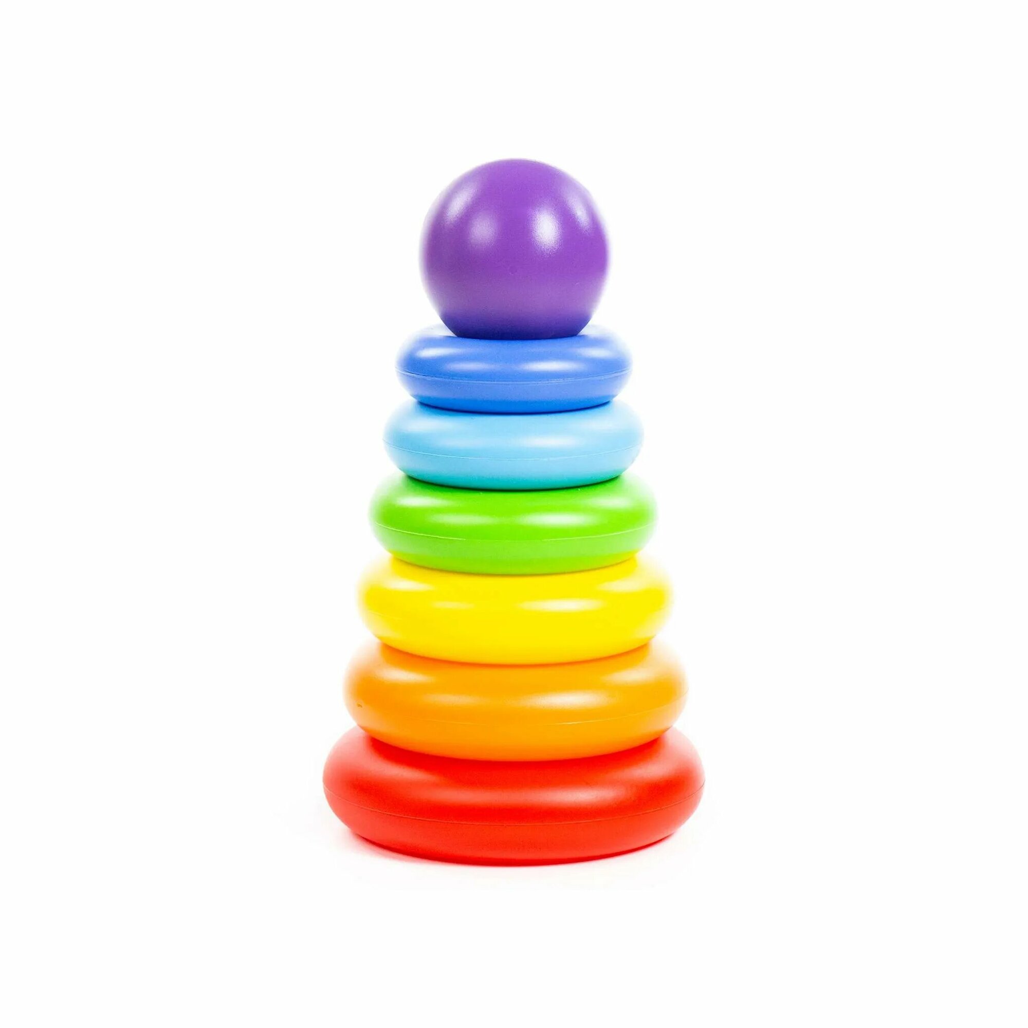 Классическая пирамидка не утратила своей актуальности. Эта логическая игрушка помогает познавать мир малышу, когда он ещё не научился ходить. С её помощью ребёнок понимает, что предметы отличаются размером и цветом. Кольца пирамидки можно считать. Игрушка безопасна и выполнена из качественного пластика. Благодаря классической пирамидке у малыша развиваются логика, память, мелкая моторика рук. Верх пирамидки выполнен в форме шара.