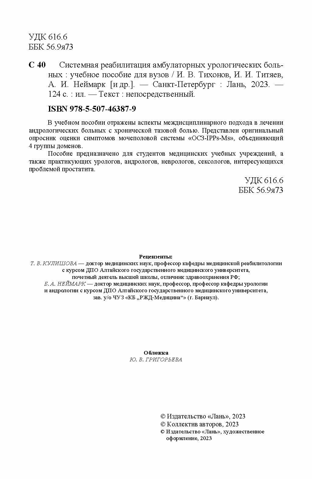 Системная реабилитация амбулаторных урологических больных. Учебное пособие (Тихонов Игорь Викторович, Неймарк Александр Израилевич, Титяев Игорь Иванович); Лань, 2023
