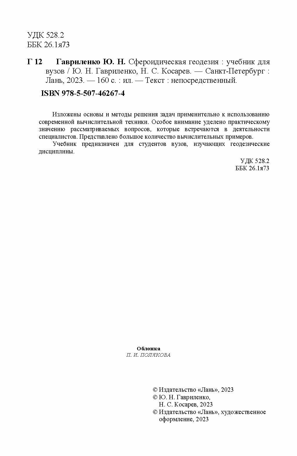 Сфероидическая геодезия. Учебник для вузов (Н. С. Косарев); Издательство ЛАНЬ, 2023