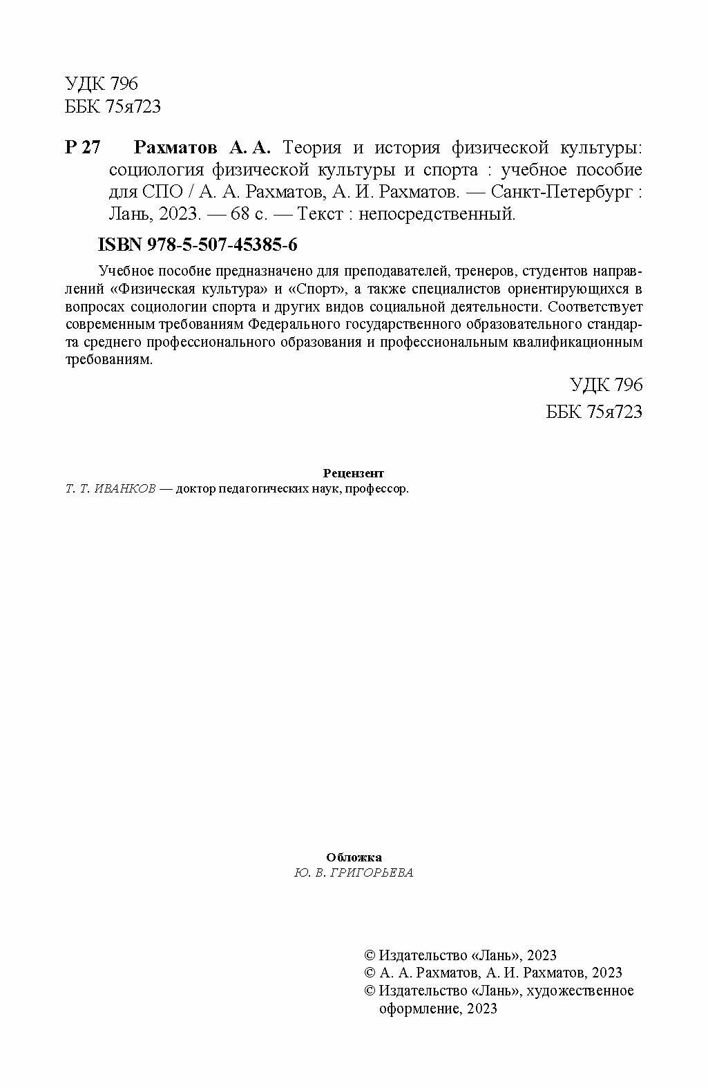 Теория и история физической культуры. Социология физической культуры и спорта. Учебное пособие (А. И. Рахматов); Издательство ЛАНЬ, 2023