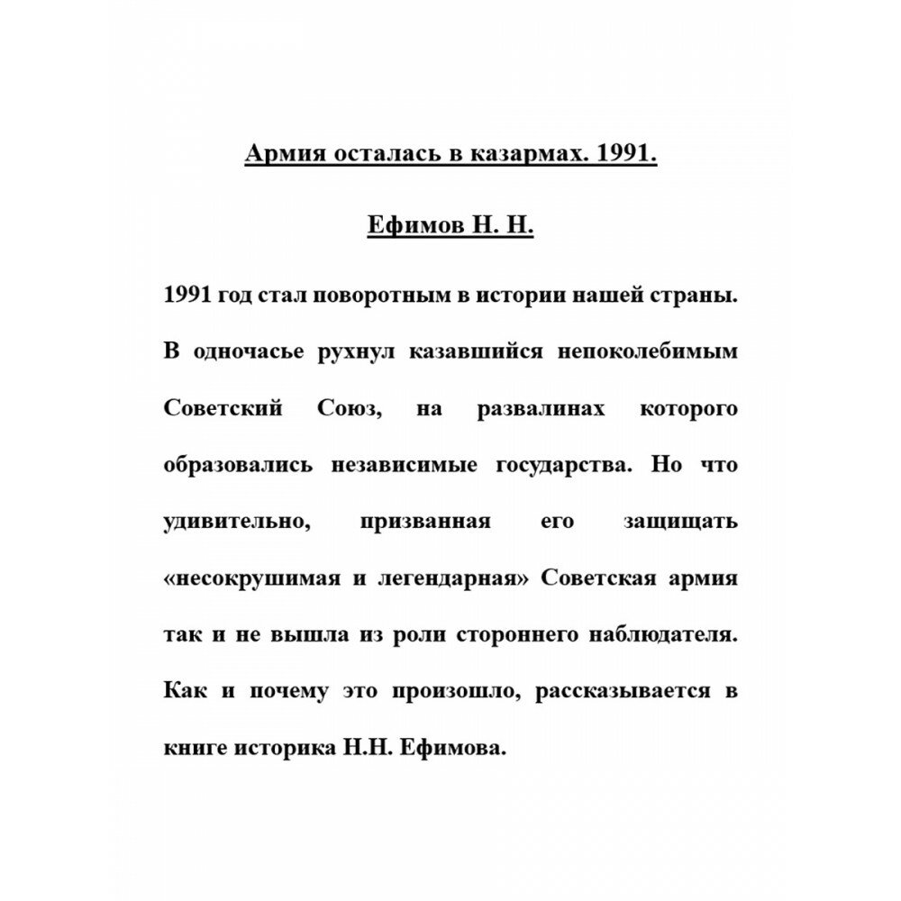 1991 год стал поворотным в истории нашей страны. В одночасье рухнул казавшийся непоколебимым Советский Союз, на развалинах которого образовались независимые государства. Но что удивительно, призванная его защищать «несокрушимая и легендарная» Советская армия так и не вышла из роли стороннего наблюдателя. Как и почему это произошло, рассказывается в книге историка Н.Н. Ефимова.