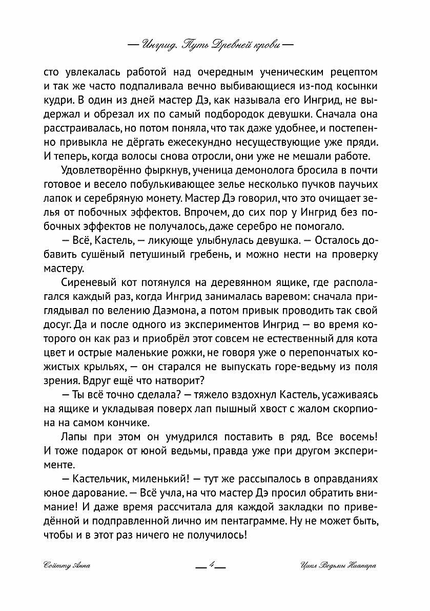 приключенческое фэнтези. любопытное чтение о ведьме Ингрид, поиске своего места в мире и борьбе за будущее своего народа. главные герои - на обложке. котик -наша. или нет? Если присмотритесь, заметите, что у милого фиолетового пухлика Кастеля не только рожки, но и крылья, и да, это кот, который боится летать.