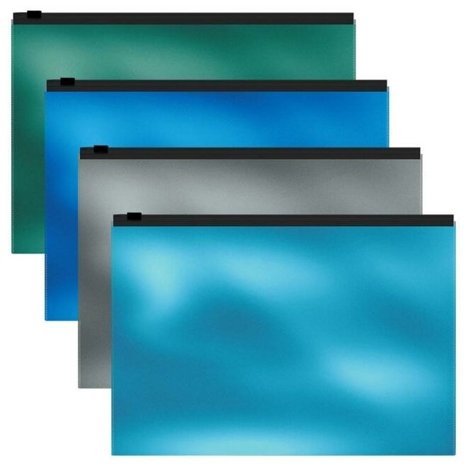 ZIP-пакет формата Travel из высококачественного непрозрачного пластика с текстурой поверхности "зеркало".Предназначен для хранения и транспортировки небольшого количества документов.Цвет ZIP-пакета - ассорти: голубой, серебряный, бирюзовый, синий.Удобная ZIP-молния обеспечивает быстрый доступ к бумагам.ZIP-пакет вмещает до 100 бумажных листов.Толщина материала - 0.18 мм.Поставляется в различных вариантах цвета без возможности выбора.