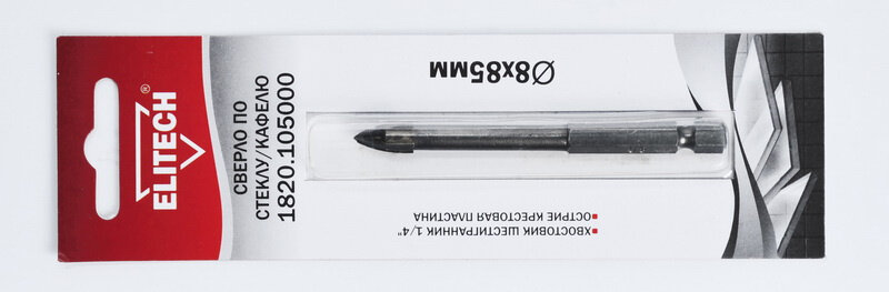 **Сверло копьевидное по стеклу Elitech** имеет шестигранный хвостовик. Используется с дрелями, имеющими подходящий цоколь. Подходит для работ с кафельной или керамической плиткой. Острие представляет собой крестовую пластину. Имеет правое вращение.