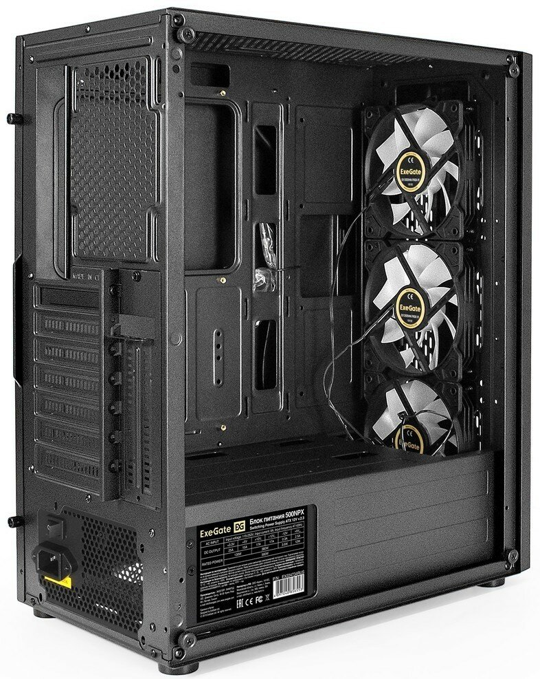 Корпус Miditower ExeGate (ATX, БП 700NPX с вент. 12 см, с окном, 1*USB+1*USB3.0, аудио, 3 вент. 12см с RGB подсветкой)
