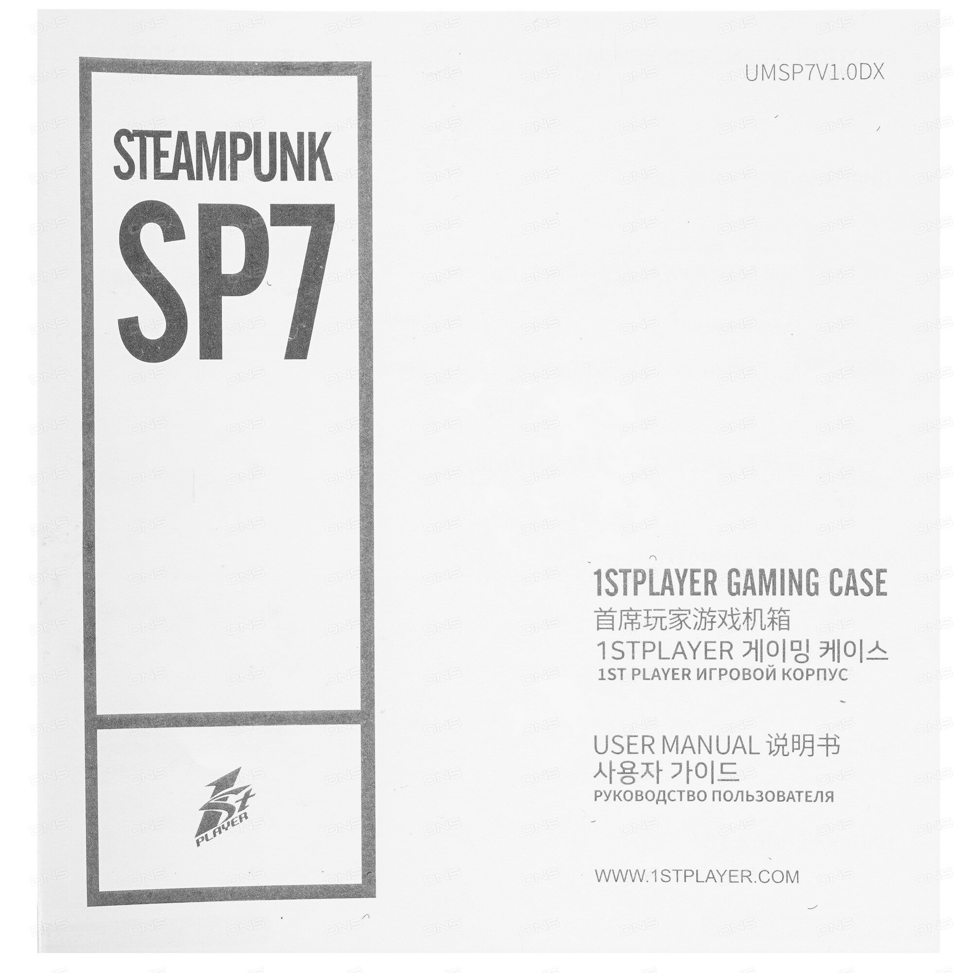 Корпус ATX 1STPLAYER SP7-EV-WH белый без БП боковая панель из закаленного стекла LCD-дисплей USB Type-C 2*USB 3.0 audio SP7 EV