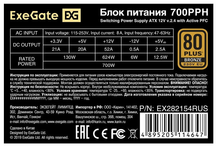 На сегодняшний день товар «Корпус ATX Exegate EX295110RUS черный БП 700W боковая панель из закаленного стекла USB 3.2 2*USB 2.0 audio i3 MATRIX-PPH700» можно купить с кешбеком в 1 магазине: Onliner BY