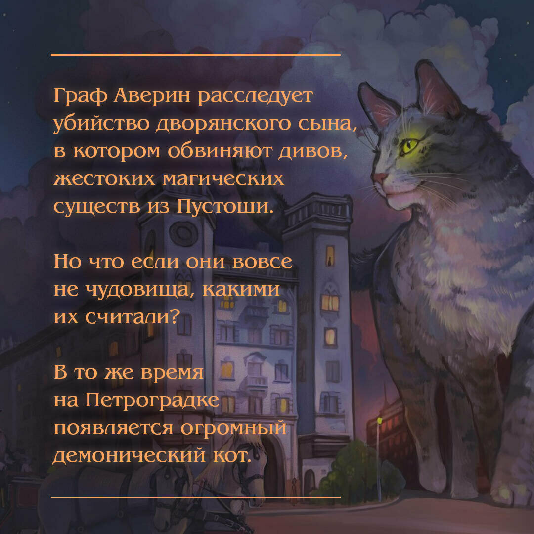 Магический Петербург, 1982 год. Граф Аверин расследует убийство дворянского сына, в котором обвиняют дивов, жестоких магических существ из Пустоши. Они подчиняются людям, но выходят из-под контроля, стоит почувствовать кровь или слабость хозяина. Аверин понимает, что это не первое убийство и за преступлениями стоит очень сильный див. В то же время на Петроградке появляется огромный демонический кот...