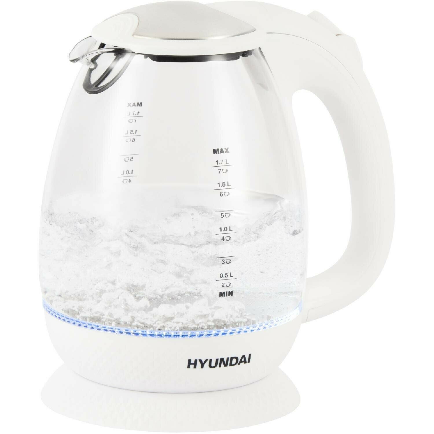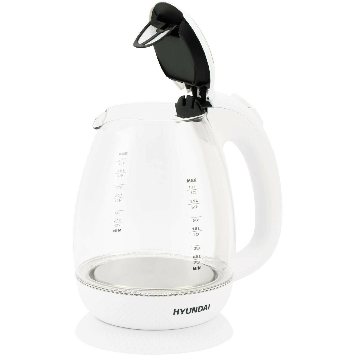 Чайник электрический Hyundai /прозрачный, объём 1.7л, мощность 2200Вт, материал корпуса: стекло