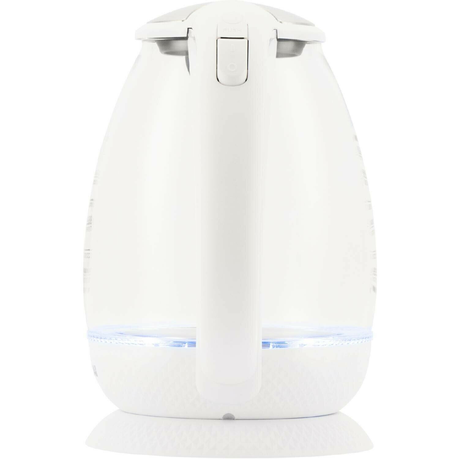 Корпус выполнен, по большей части, из боросиликатного стекла. Этот материал отличается выдающимися теплоизоляционными характеристиками и прозрачен, поэтому на стенки нанесена градация, по которой можно с легкостью судить о том, насколько наполнен чайник. Дно и подставка сделаны из легкого, прочного и надежного пластика.