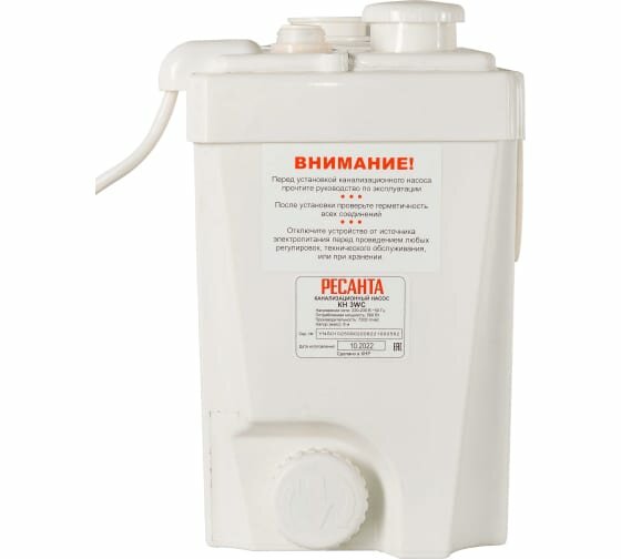 | Комплектация | Канализационный насос – 1 шт. Выходной патрубок с обратным клапаном – 1 шт. Выходная муфта – 3 шт. Хомут металлический – 6 шт. Резиновая муфта переходник для туалета – 1 шт. Заглушка для туалета – 1 шт. Нейтрализатор запаха – 2 шт. Паспорт – 1 шт. Упаковк |