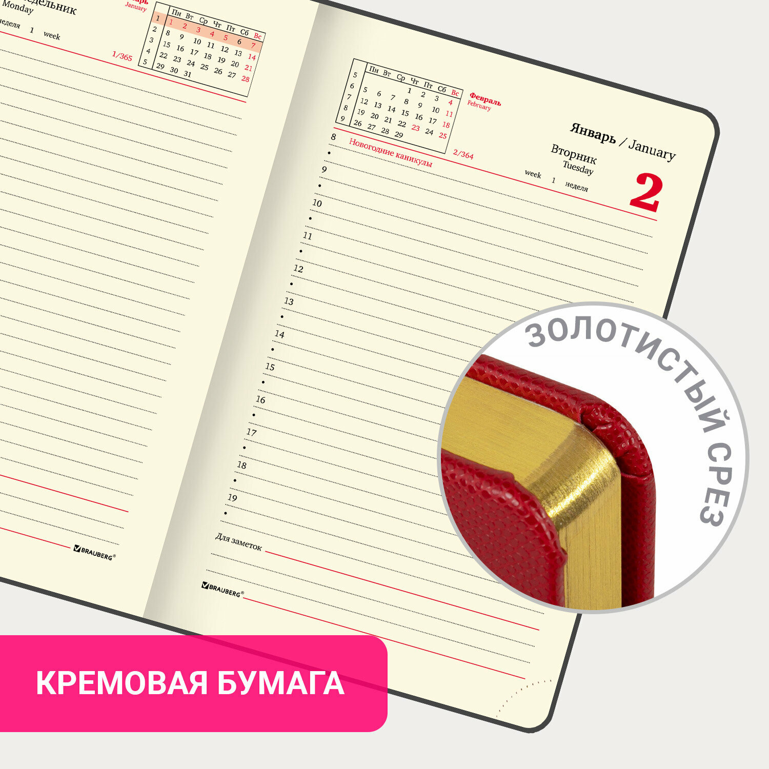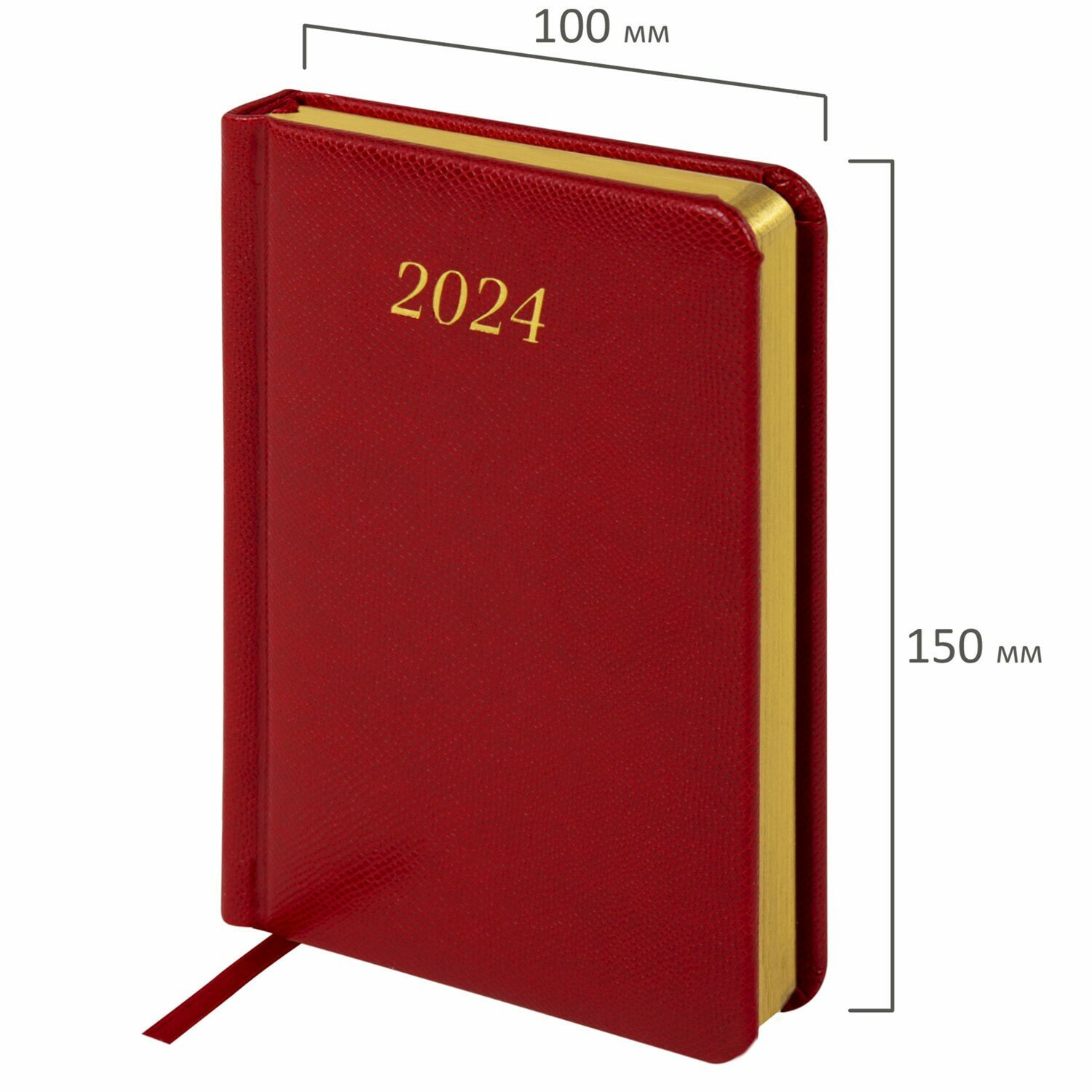 Ежедневник датированный 2024 Iguana А6 168 листов красный Brauberg
