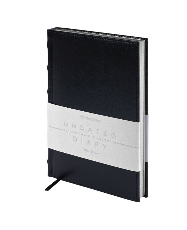 Ежедневник недатированный Flame А5 160 листов черный серебряный срез Brauberg