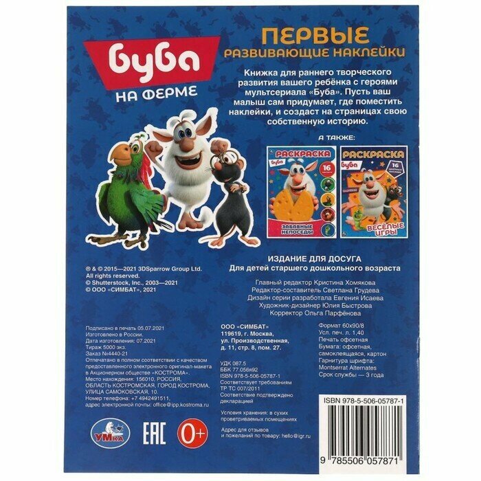 Первые развивающие наклейки. Буба. На ферме. 50 наклеек (Грудева С.); Симбат, 2021