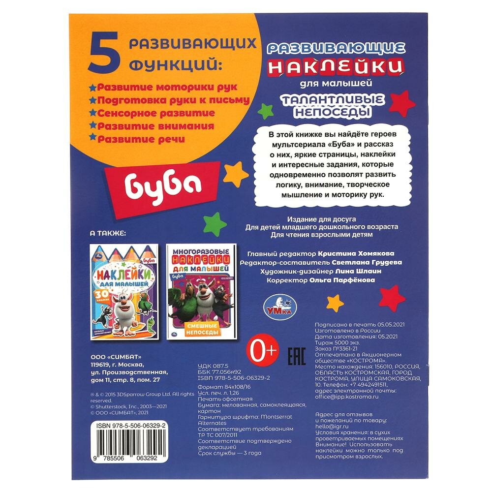 Развивающие наклейки для малышей. Буба. Талантливые непоседы. 50 наклеек (Грудева Светлана (редактор)); Симбат, 2021