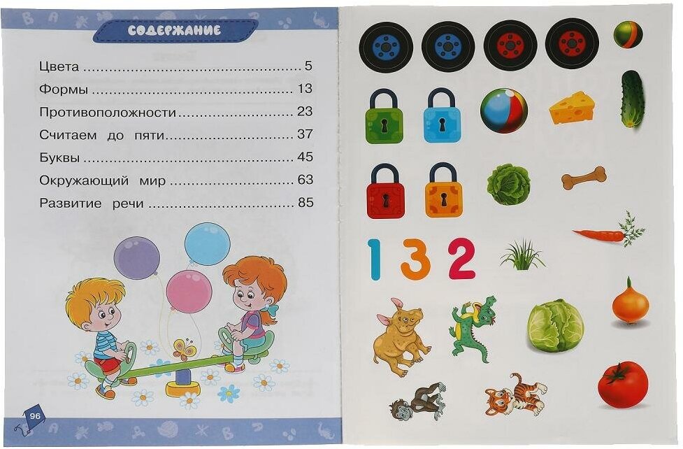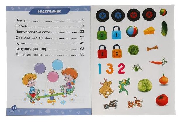 - направления обучения: цвета, формы, противоположности, считаем до 5, буквы, окружающий мир, развитие речи