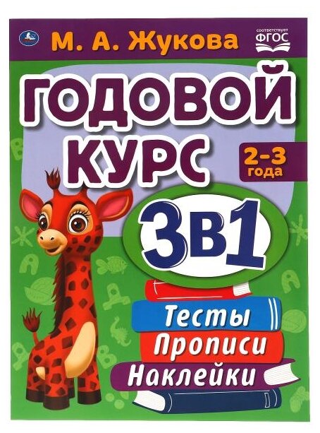 Учебное пособие 3 в 1 с наклейками. Годовой курс занятий. 2-3 года. Тесты, прописи, наклейки. М.А. Жукова ТМ «УМка»: