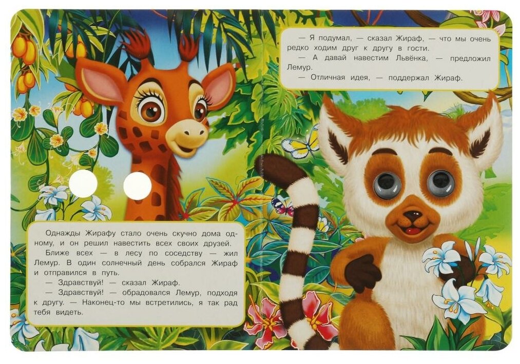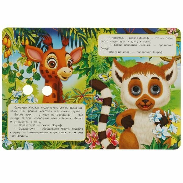 Книжка с глазками. Жираф. Поход в гости ТМ «УМка»:- интересный сюжет- пластиковые объёмные глазки- красочные иллюстрации- безопасные закруглённые уголки- плотные картонные страничкиОбъём: 8 стр. Формат: 160 х 220 мм.Материал: картон + пластмасса.Рекомендовано детям младшего дошкольного возраста.