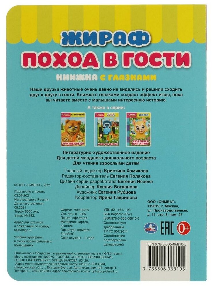 Сервис сравнения цен СкидкаГИД предлагает сравнить цены на товар «Книга: Книжка с глазками. Жираф. Поход в гости (Полякова Е.); Умка, 2023»