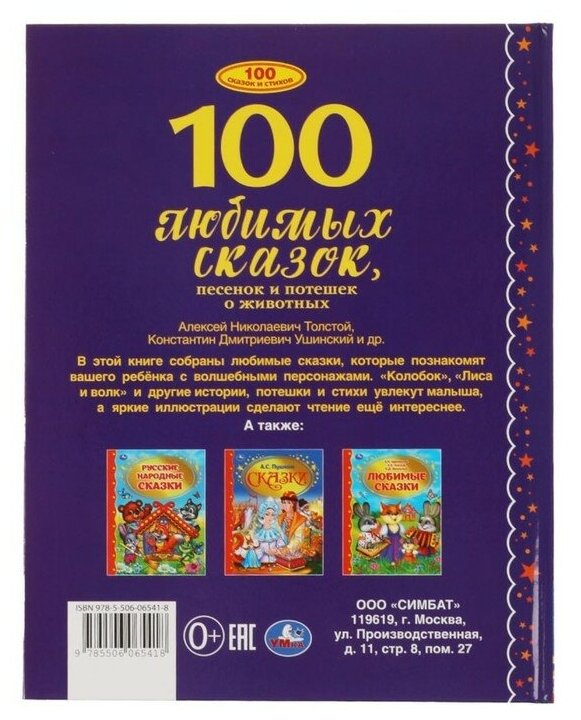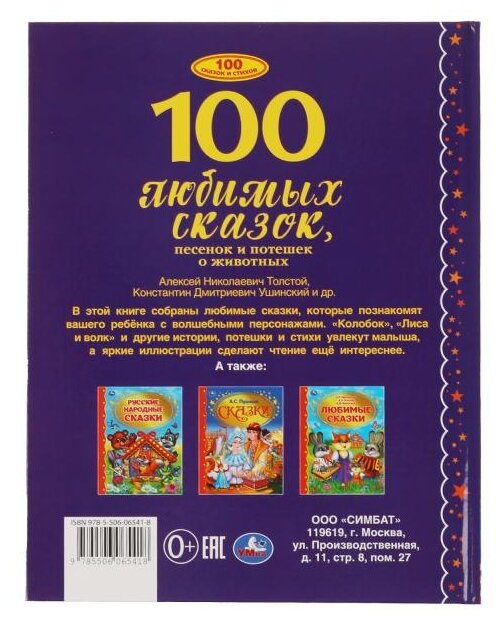 Книга, серия 100 сказок. 100 Любимых сказок, песенок и потешек о животных ТМ «УМка»: