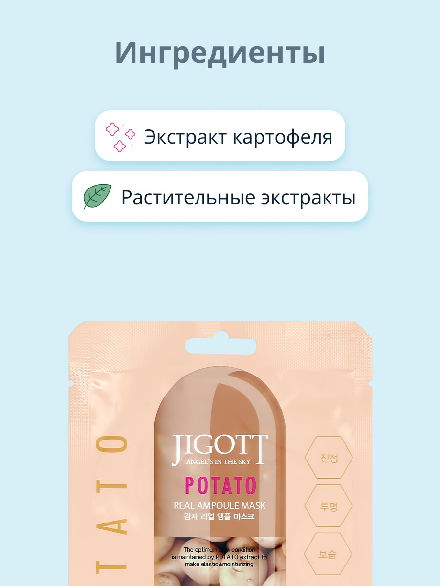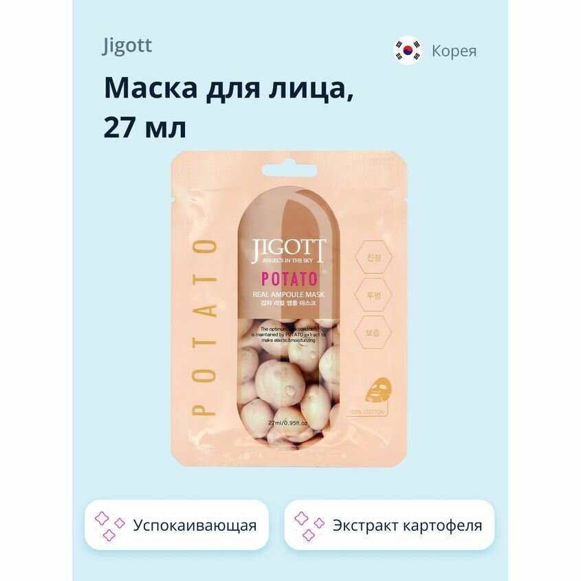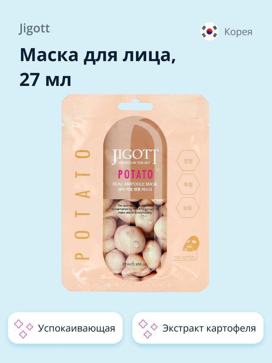 На сегодняшний день товар «Маска тканевая для лица Jigott Real Ampoule с экстрактом картофеля 27 мл» можно купить с кешбеком в 1 магазине: Яндекс.Маркет