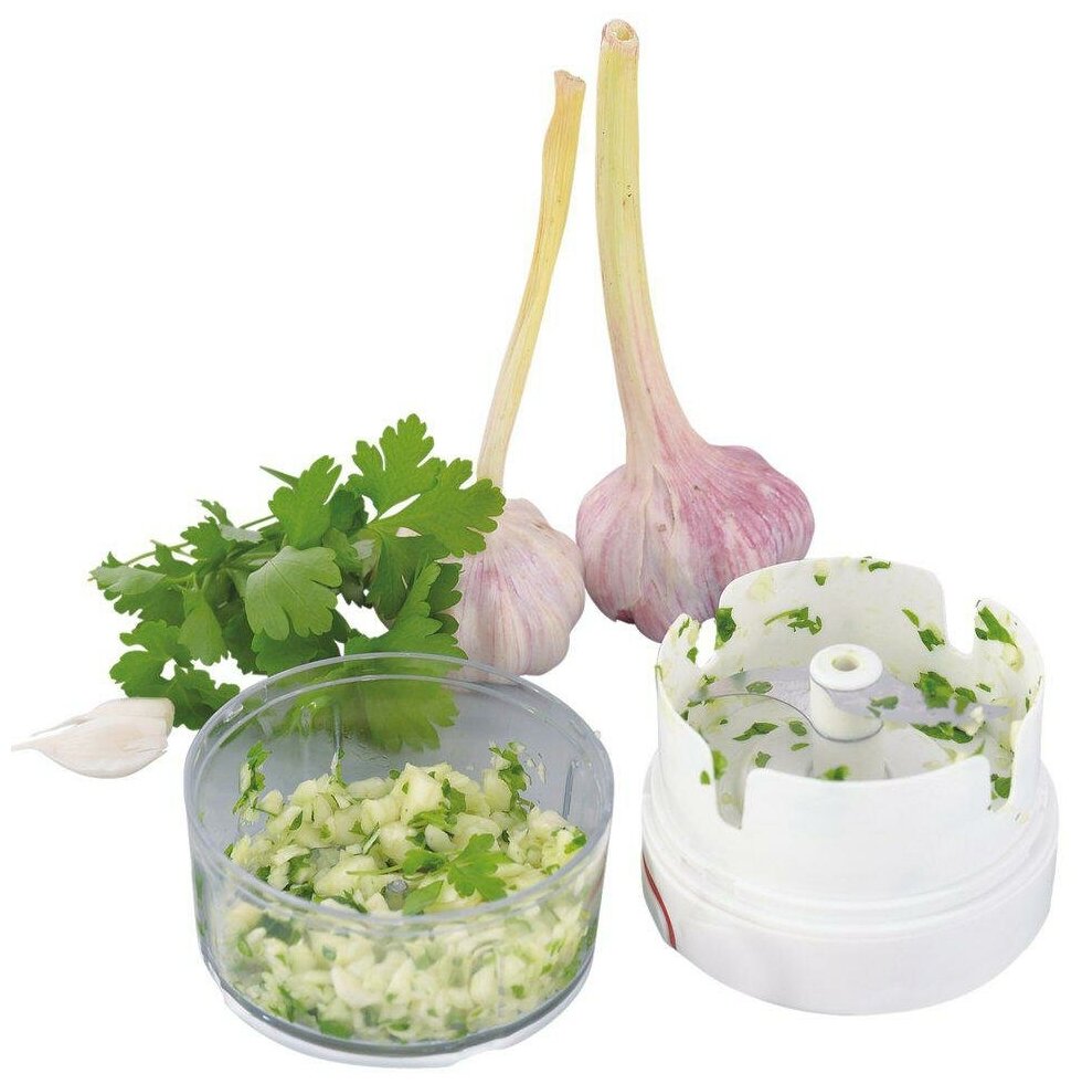 Очень удобное приспособление на Вашей кухне! Ручной измельчитель предназначен для измельчения овощей, фруктов, бескостного мяса, орехов, шоколада. Компактный и простой в использовании механизм позволяет всего несколькими движениями смешать, измельчить или нарезать продукты. Поместите режущие лезвия в центр чаши, положите необходимые продукты, накройте крышкой и потяните за ручку на крышке, тем самым заставив лезвия вращаться. Для достижения лучшего результата, ваши движения должны быть четкими и резкими. Мягкие продукты не требуют усилия для измельчения. Перед первым использованием и после каждого применения, разобрать измельчитель, вымыть все части в теплой воде, можно с жидким моющим средством, сполоснуть проточной водой и просушить.