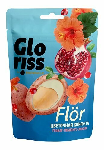 Конфета Gloriss by Biennale арахис в белой шоколадной глазури со вкусом гранат-гибискус 65 г