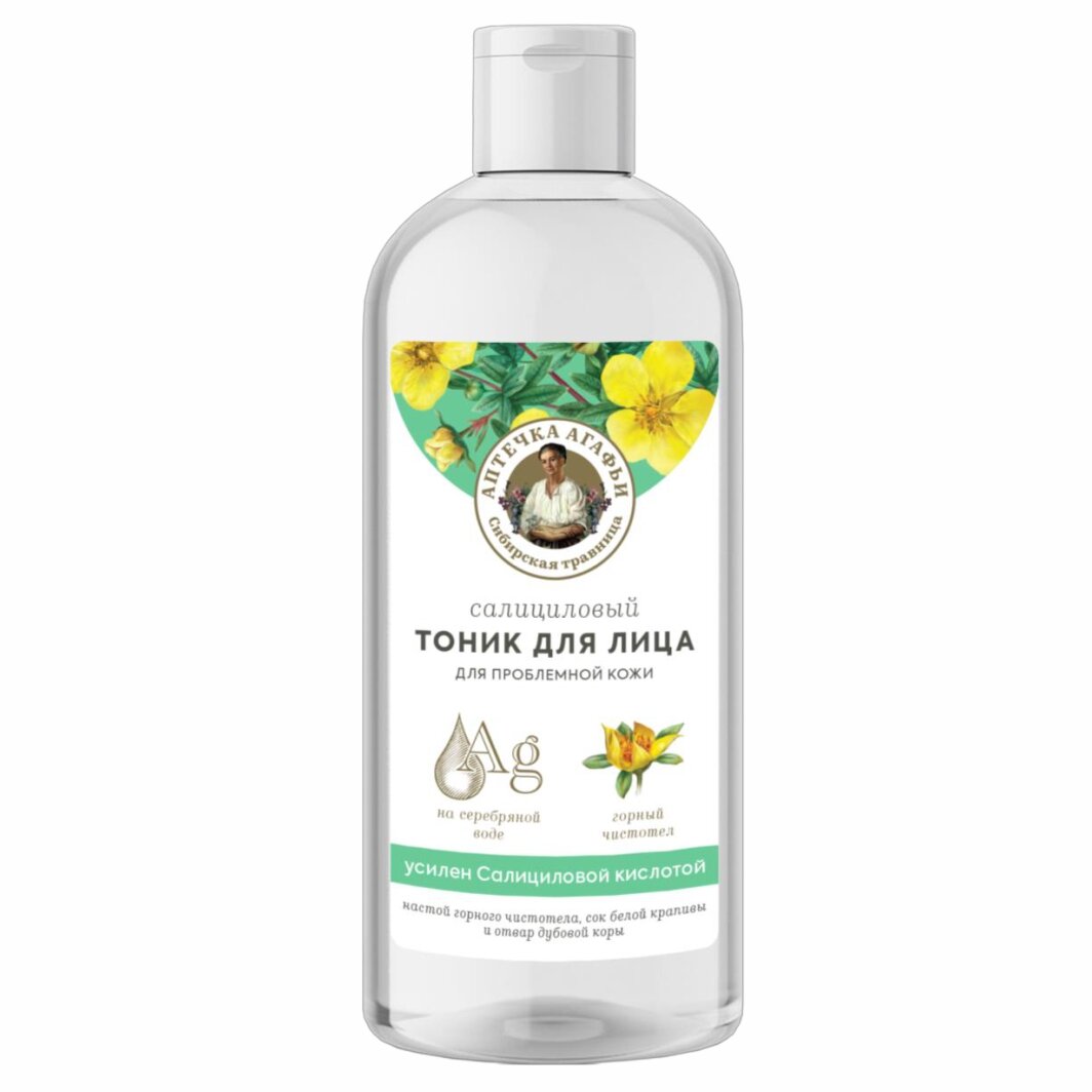 Салициловый тоник для лица на серебряной воде создан по старинным рецептам сибирской травницы Агафьи Тихоновны Ермаковой. Он эффективно очищает кожу, борется с излишней жирностью и обладает антибактериальным действием.