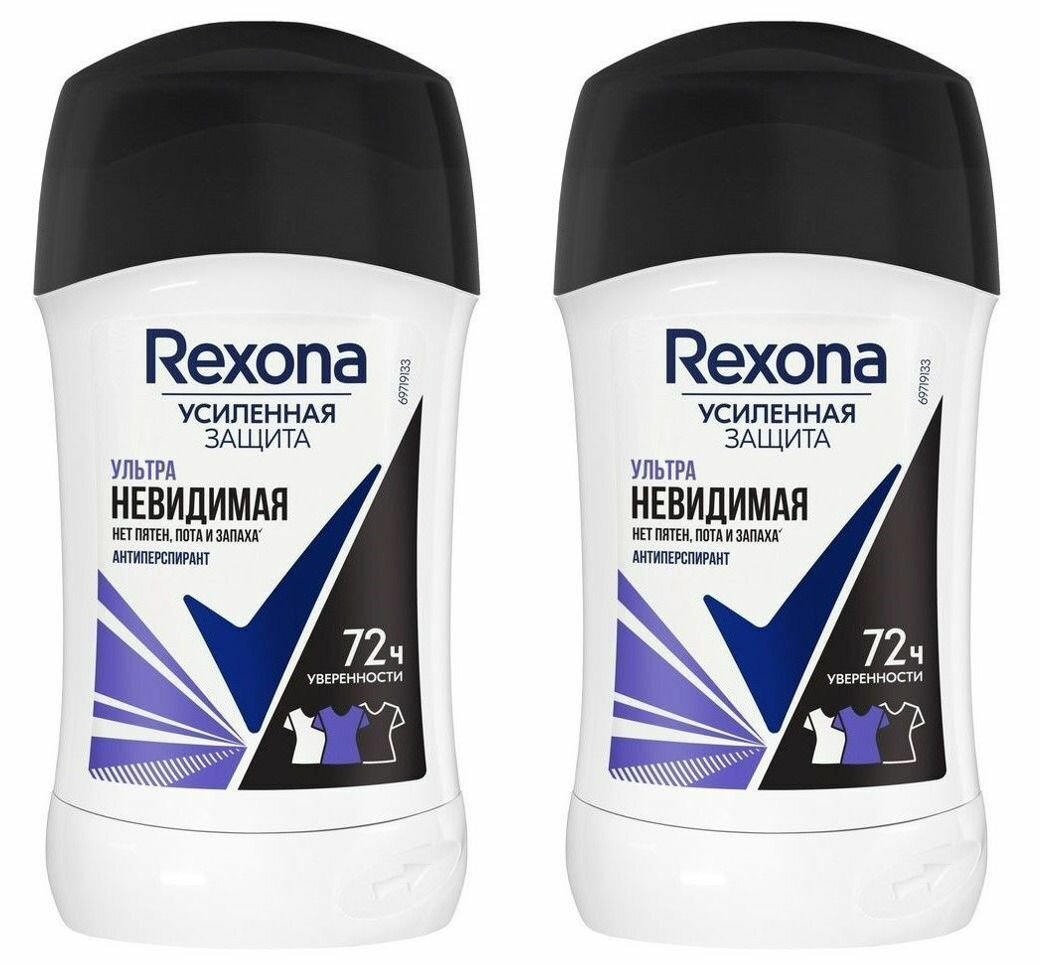 Антиперспирант-карандаш Rexona Ультраневидимая позаботится о бескомпромиссной защите от пота и запаха до 72 часов! Подходит для черной и светлой одежды. Технология Motionsense активируется при движении, сохраняя свежесть и комфорт весь день. Улучшенная формула бережно сохраняет ткань от белых следов, желтых пятен и выцветания.