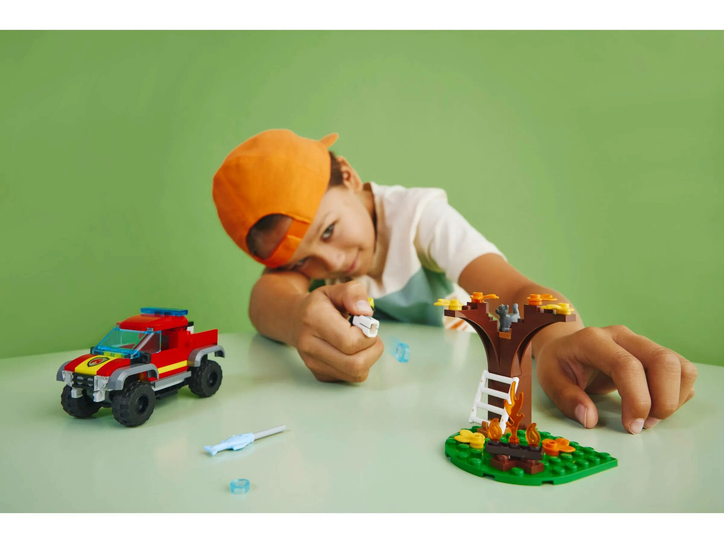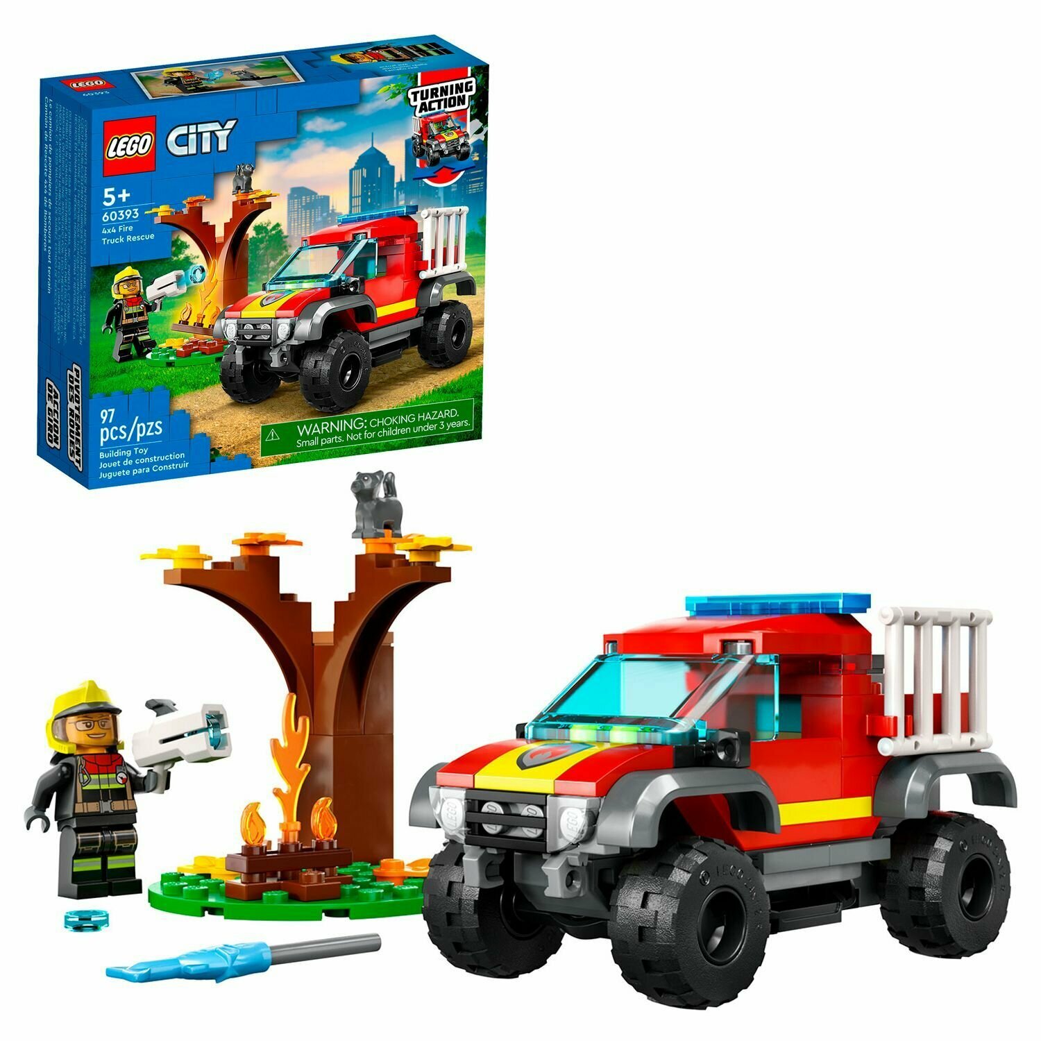 Дайте волю творческому воображению детей с набором Лего Сити Спасательный пожарный внедорожник (60393), включающим аккуратный полноприводный автомобиль с толстыми шинами, открывающейся кабиной и съемной пусковой установкой LEGO Water Element. В этот набор также входит декорация для костра с пламенем LEGO, а также минифигурка пожарного и фигурка кошки.