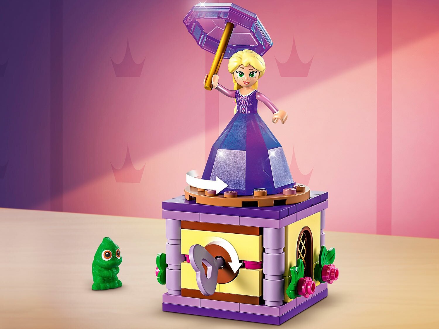 Очаруйте детей в возрасте от 5 лет и старше этим набором Лего Дисней Вращающаяся Рапунцель (43214), включающим сборную подставку с декоративными деталями, ключ и место для фигурки хамелеона Паскаля LEGO, фигурку мини-куклы LEGO Рапунцель и алмазное платье. который соединяется с зонтиком для хранения мини-куклы. Дети могут наслаждаться простым и интуитивно понятным приключением по строительству с помощью приложения LEGO Builder, которое позволяет им увеличивать и вращать модели в 3D, сохранять наборы и отслеживать свои успехи.