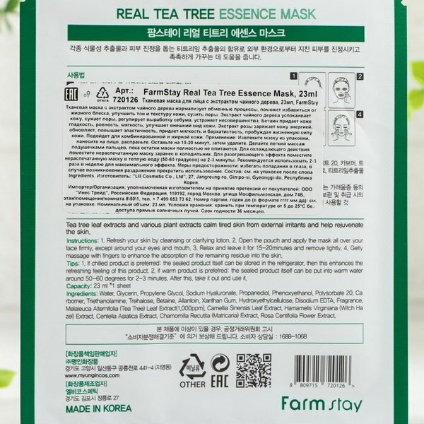 Маска тканевая для лица с зеленым чаем FARMSTAY увлажняет, успокаивает, заживляет. Маска предотвращает образование угрей, сужает поры, убирает отечность, нормализует работу сальных желёз, освежает, смягчает, улучшает цвет лица.