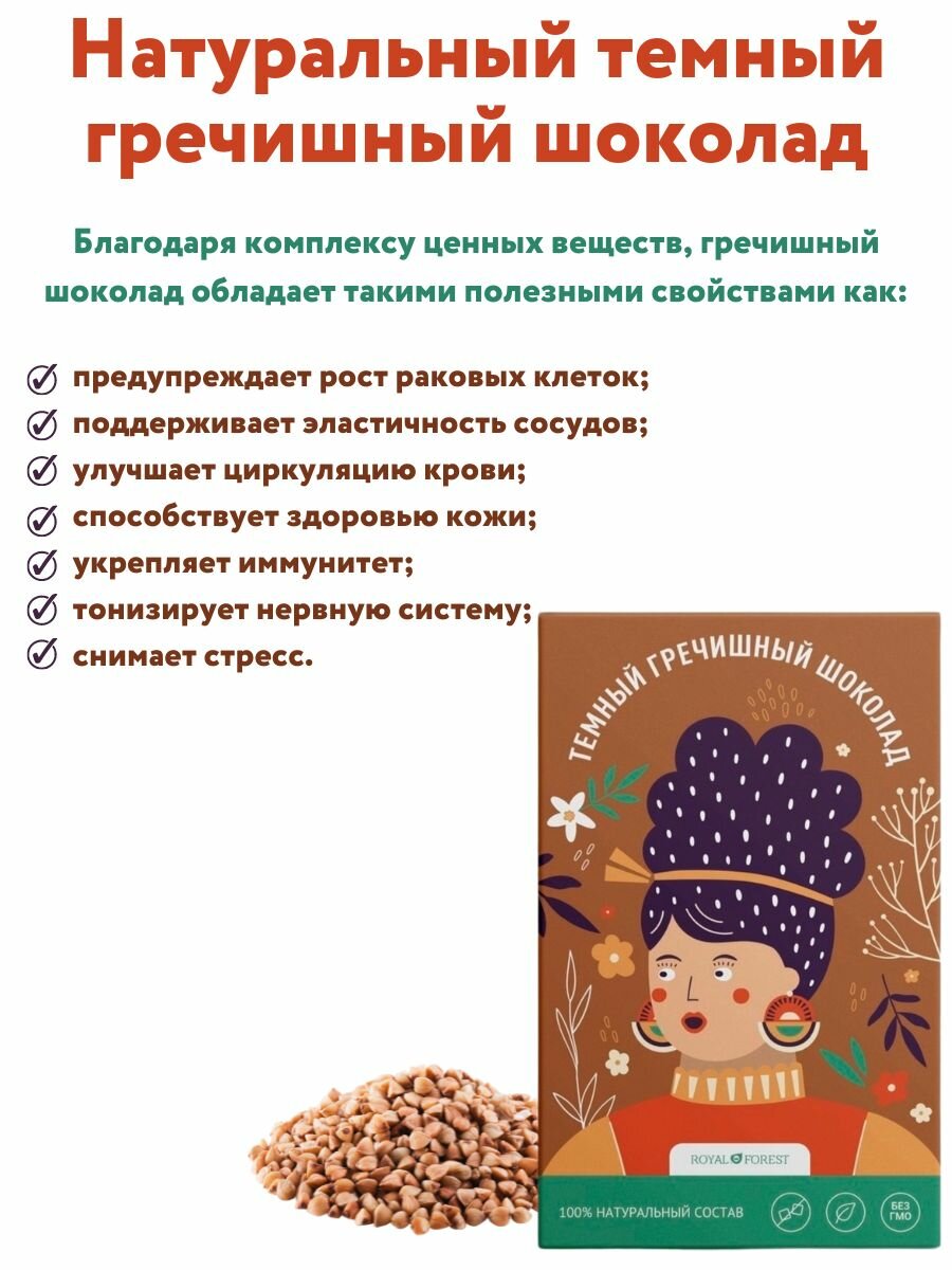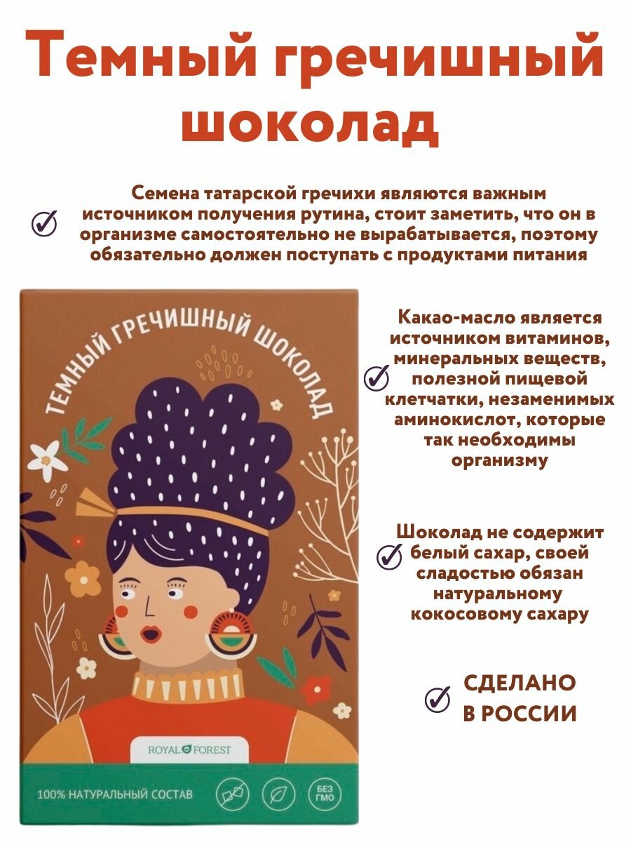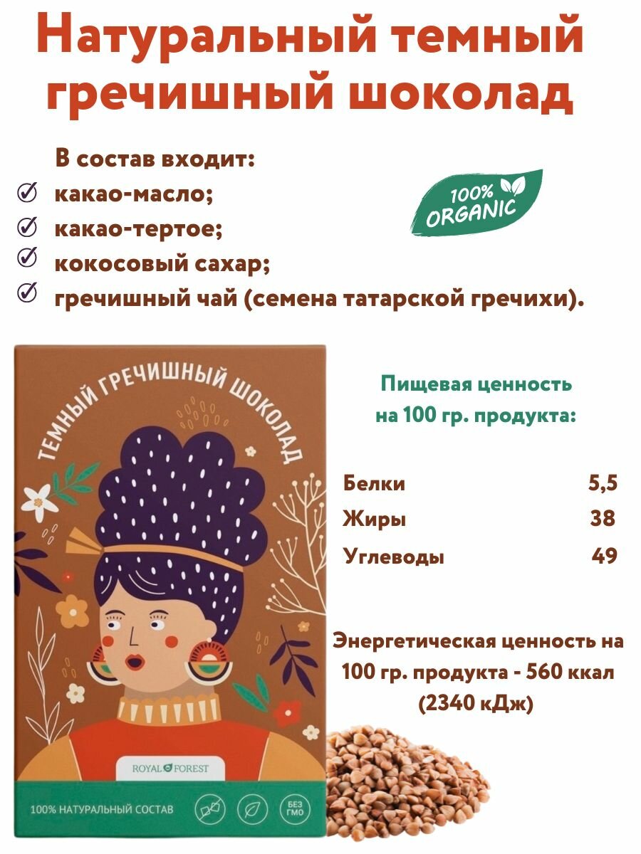 Тёмный гречишный шоколад от Royal Forest это вкусная и полезная альтернатива обычному темному шоколаду.