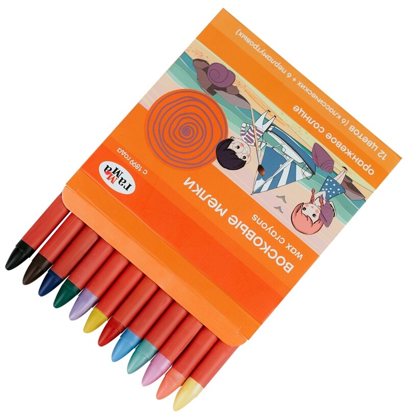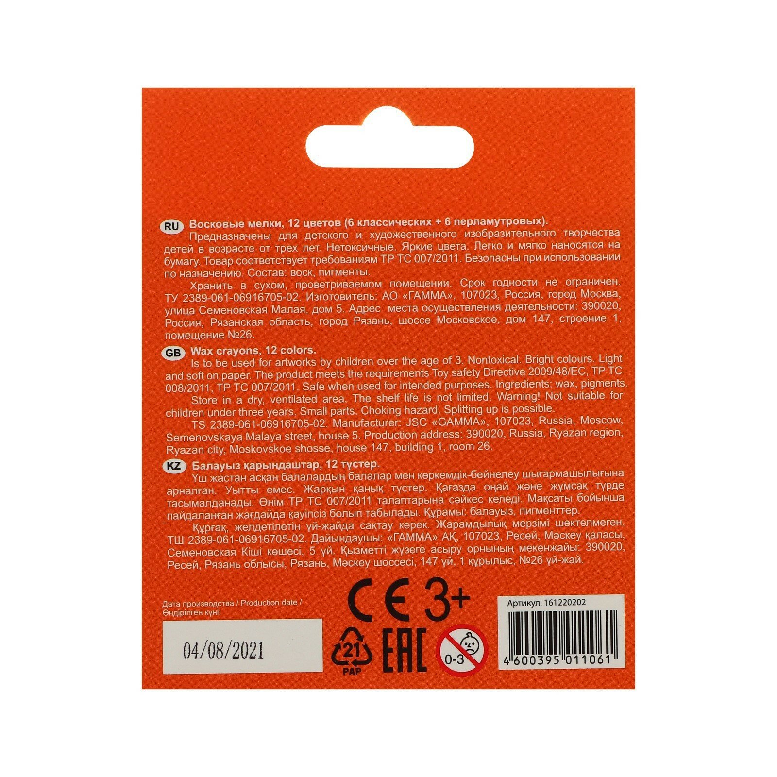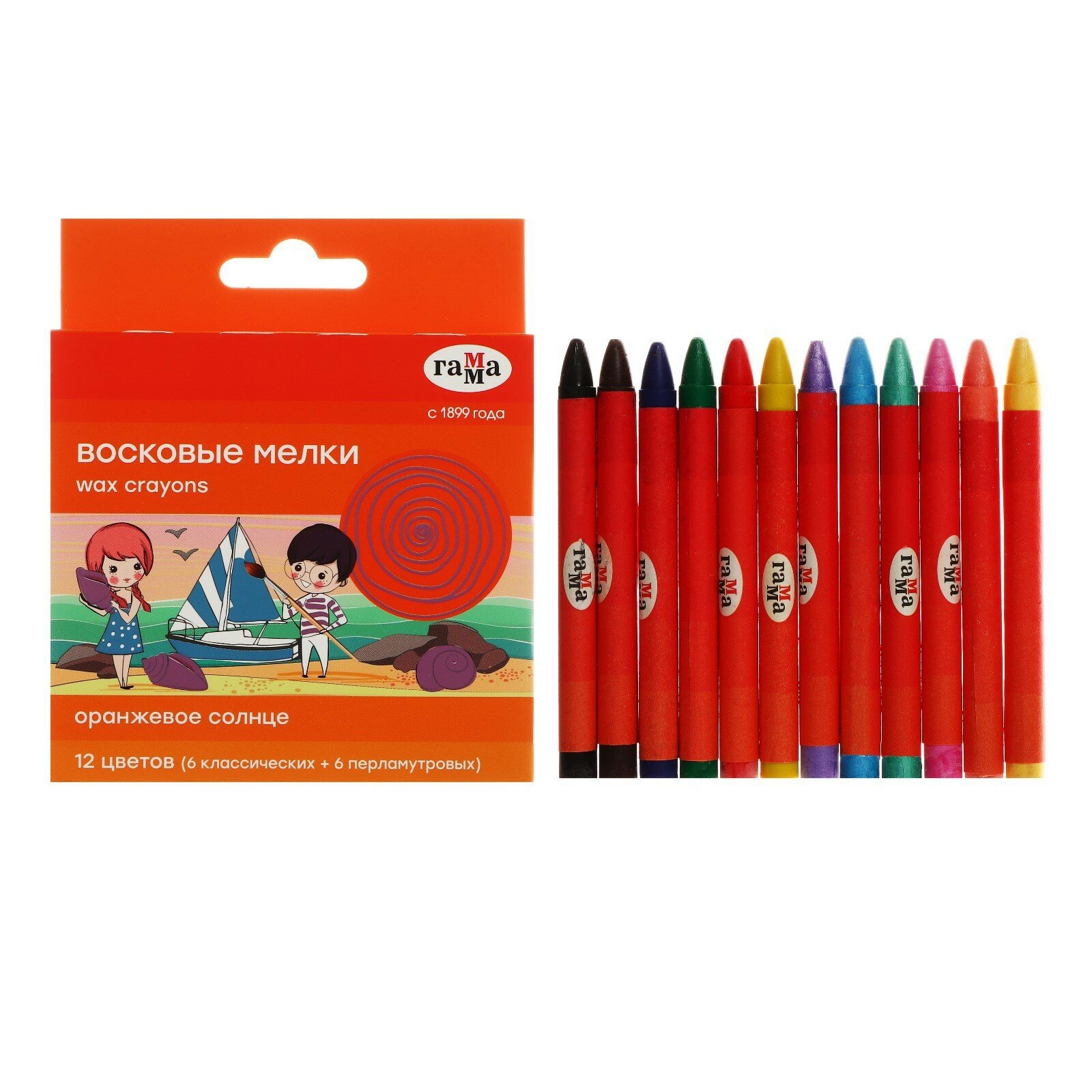 Мелки восковые Гамма Оранжевое солнце перламутровые + классические 12 цветов