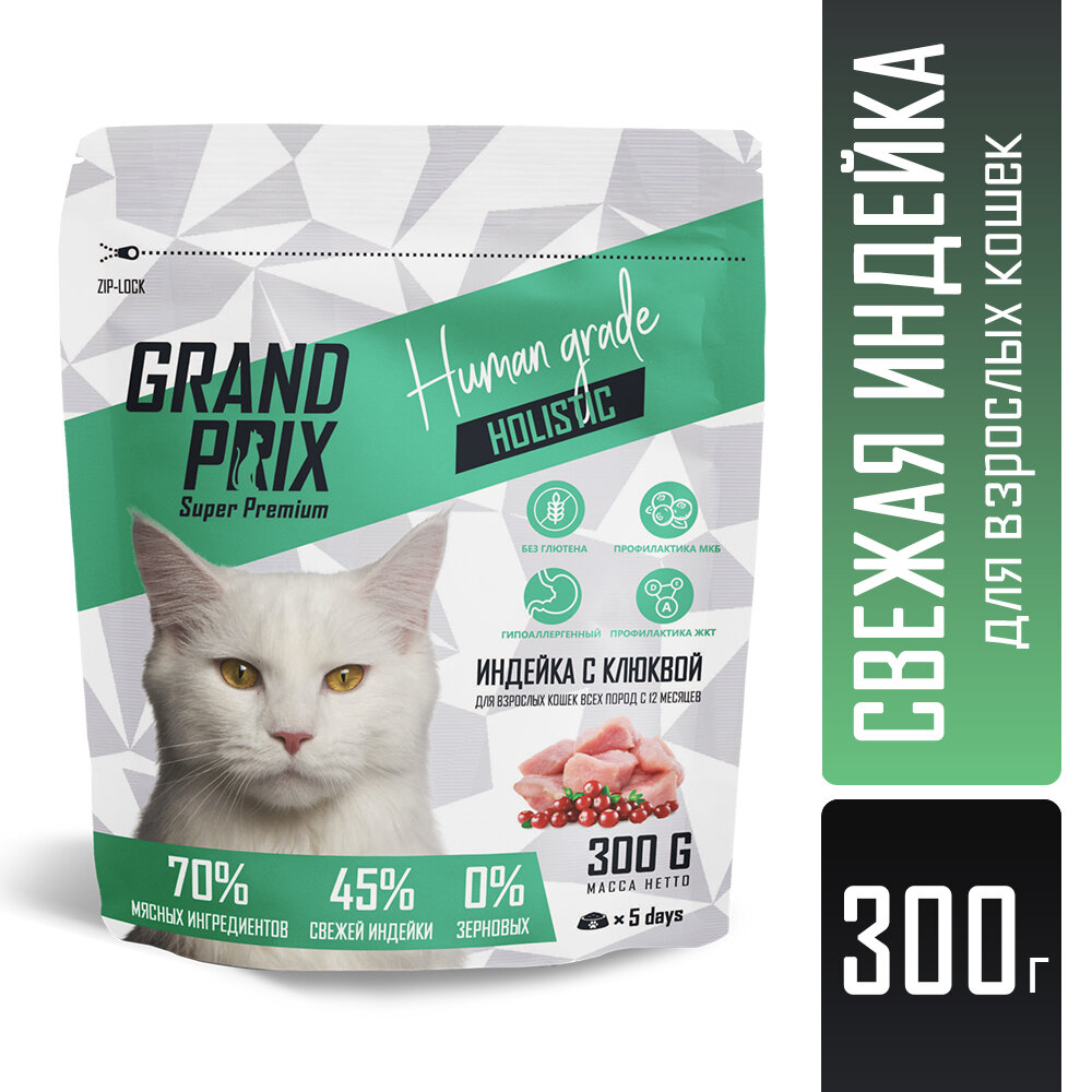 GRAND PRIX HOLISTIC Grain free Turkey монопротеиновый беззерновой корм класса холистик с индейкой для взрослых кошек всех пород. В составе корма один источник белка животного происхождения индейка. Монопротеиновая формула корма исключает развитие аллергии или других нежелательных реакций. 70% мясных ингредиентов в составе, из них 45% свежего мяса без заморозки (шеи и сердечек индейки), полностью удовлетворяют потребности облигатных хищников в животном белке. Источниками углеводов беззернового корма GRAND PRIX стали нут и картофель.