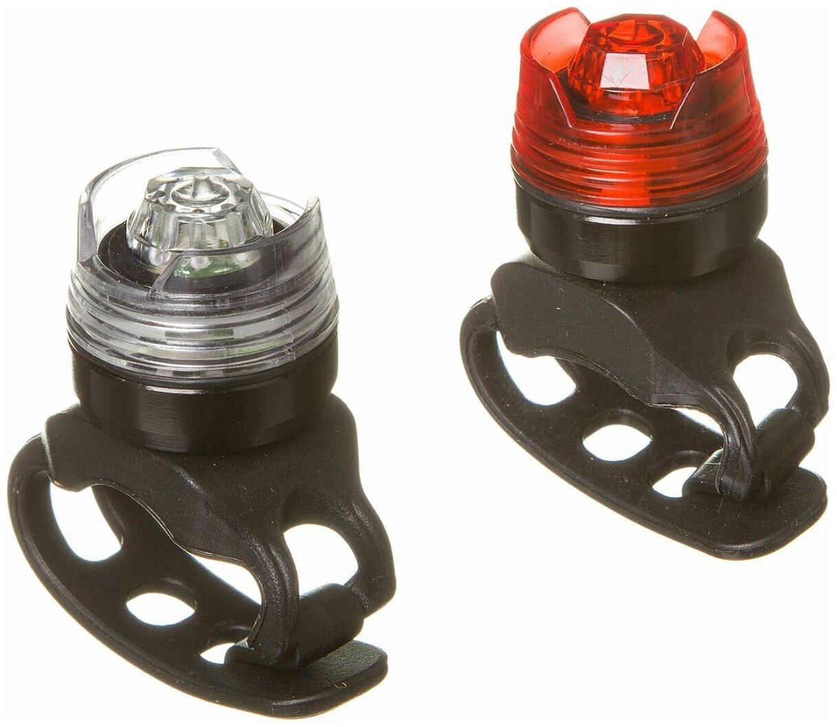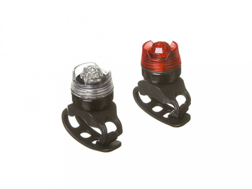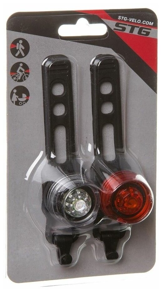 Комплект диодных фонарей STG -TL5417 включает в себя основной фонарь с белым диодом на руль, а также задний фонарь с красным диодом. В комплекте есть все необходимые быстросъемные крепления универсального формата (силиконовый хомут), с помощью которых можно легко зафиксировать устройства на велосипеде. Передний и задний фонари имеют несколько режимов работы: постоянный и пульсирующий свет. Фонари имеют угол обзорности 180 градусов, что позволяет сделать себя максимально заметным. Так же можно отметить тип источника питания - 2xCR2032.