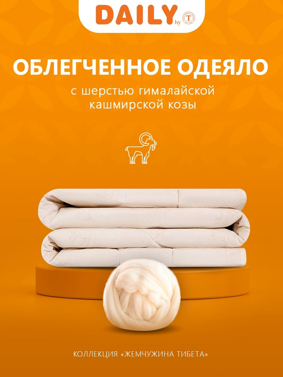 Одеяло евро Daily by Togas Жемчужина Тибета, 200Х210 см, имеет состав: верх, 100% хлопок-тик, наполнитель, 60% шерсть кашемира, 40% полиэфирное волокно. Кашемир, тончайший пух редкой горной козы. С давних пор его называют мягким золотом. Это утонченный материал, толщина его волокон не превышает 16 микрон, поэтому кашемир отличается необычайной мягкостью и нежностью. Ценность кашемира, в мягкости, легкости, способности удерживать тепло, снимать статическое электричество и защищать от воздействия электромагнитных полей. Повышенная воздухопроницаемость делает ее гигроскопичной, под одеялом из шерсти будет комфортно летом и тепло зимой. Уход, может применяться машинная стирка при температуре не выше 30 градусах. Не отбеливать. Не гладить. Сушить при низких температурах.