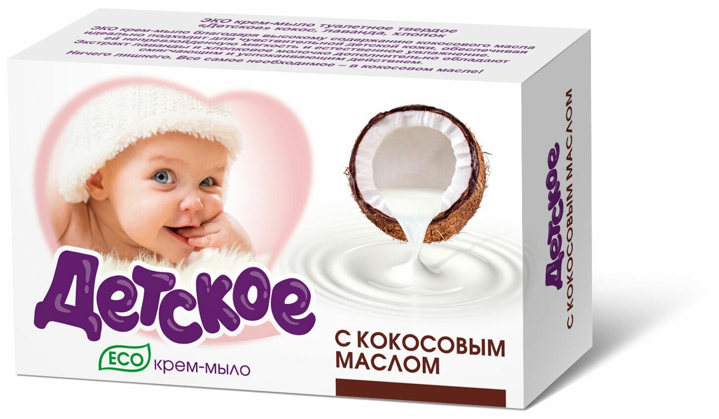 ЭКО крем-мыло благодаря высокому содержанию кокосового масла идеально подходит для чувствительной детской кожи, обеспечивая ей непревзойдённую мягкость и естественное увлажнение. Подходит для использования с первых дней жизни.