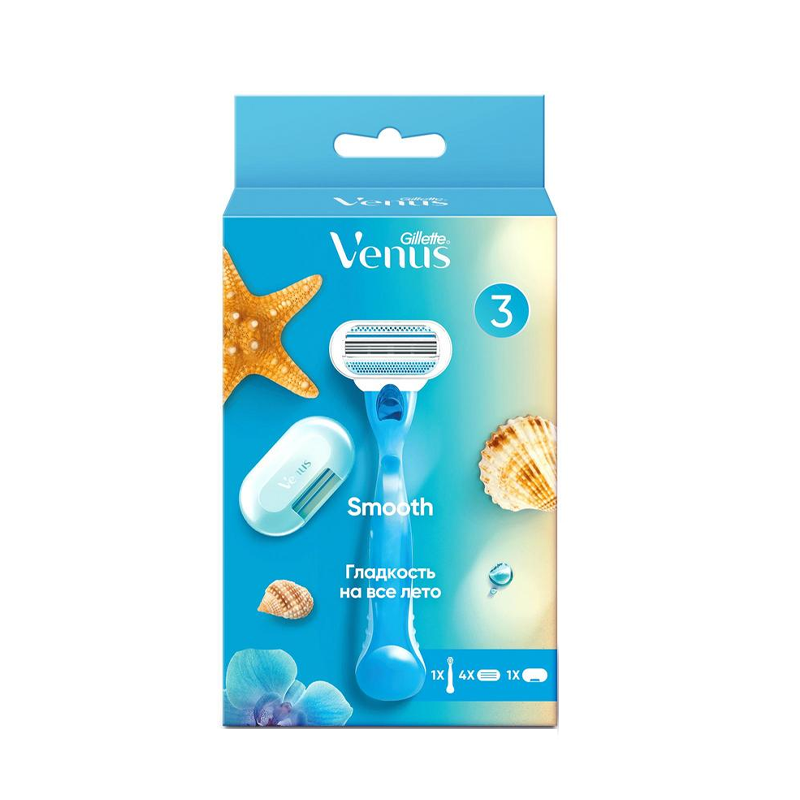 Бритва женская Gillette Venus с 1 сменной кассетой + Сменные кассеты для бритья 3шт + чехол