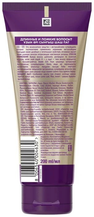 Твои длинные волосы посылают сигналы SOS? Им срочно нужен австралийский витаминный заряд бодрости! Aussie (Осси) бросает твоим волосам спасательный круг! Бальзам-ополаскиватель Aussie SOS Спасите Мои Длинные Волосы с австралийскими суперфудами настоящее SOS-спасение для длинных, поврежденных и ломких волос. Ему под силу укротить нрав даже самых спутанных и непослушных волос, делая их мягкими и разглаживая по всей длине. Благодаря уникальным австралийским суперфудам, входящим в состав его формулы дикому персику, листьям мануки и ореху макадамия этот бальзам-ополаскиватель моментально вернет длинным волосам потрясающую роскошь, блеск и жизненную силу. Для wow-эффекта используй его в сочетании с шампунем, средством интенсивного ухода, масками для волос и маслом 3 в 1 из коллекции Aussie SOS Спасите Мои Длинные Волосы. Все продукты Aussie производятся без тестирования на животных по стандарту PETA. Aussie это любовь с первого применения!