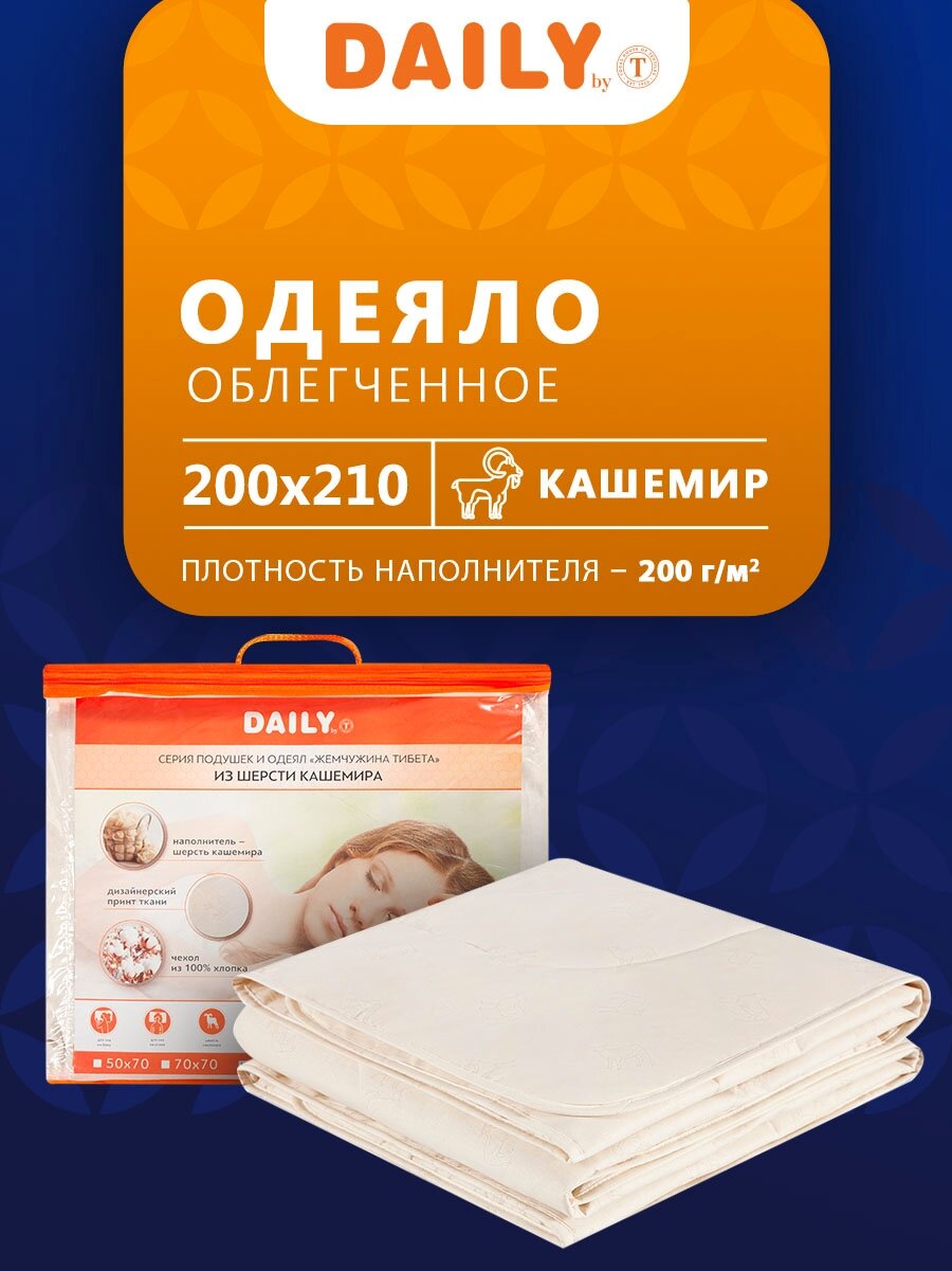 Одеяло 2-спальное Daily by Togas Жемчужина Тибета, 175Х200 см имеет состав, верх, 100% хлопок-тик, наполнитель, 60% шерсть кашемира, 40% полиэфирное волокно. Кашемир, тончайший пух редкой горной козы. С давних пор его называют мягким золотом. Это утонченный материал, толщина его волокон не превышает 16 микрон, поэтому кашемир отличается необычайной мягкостью и нежностью. Ценность кашемира, в мягкости, легкости, способности удерживать тепло, снимать статическое электричество и защищать от воздействия электромагнитных полей. Повышенная воздухопроницаемость делает ее гигроскопичной, под одеялом из шерсти будет комфортно летом и тепло зимой. Уход, может применяться машинная стирка при температуре не выше 30 градусах. Не отбеливать. Не гладить. Сушить при низких температурах.