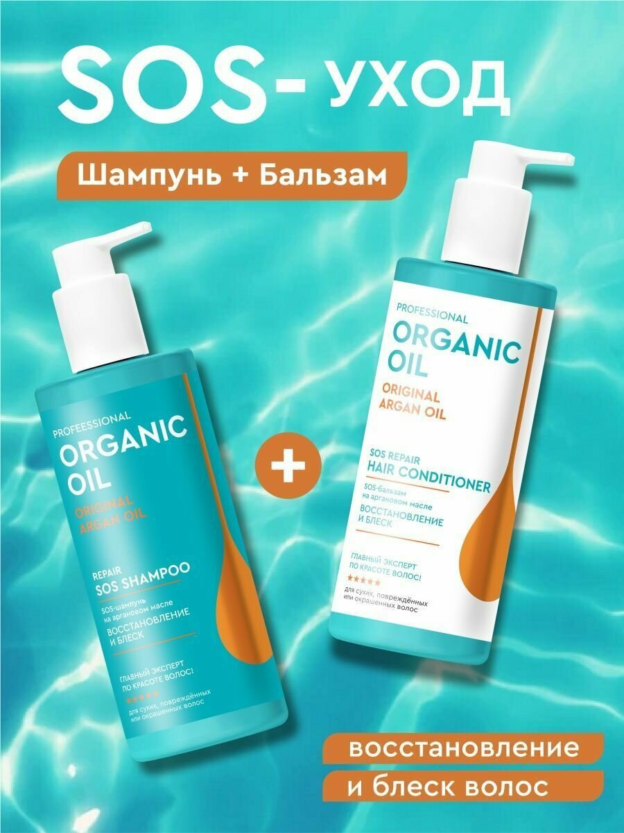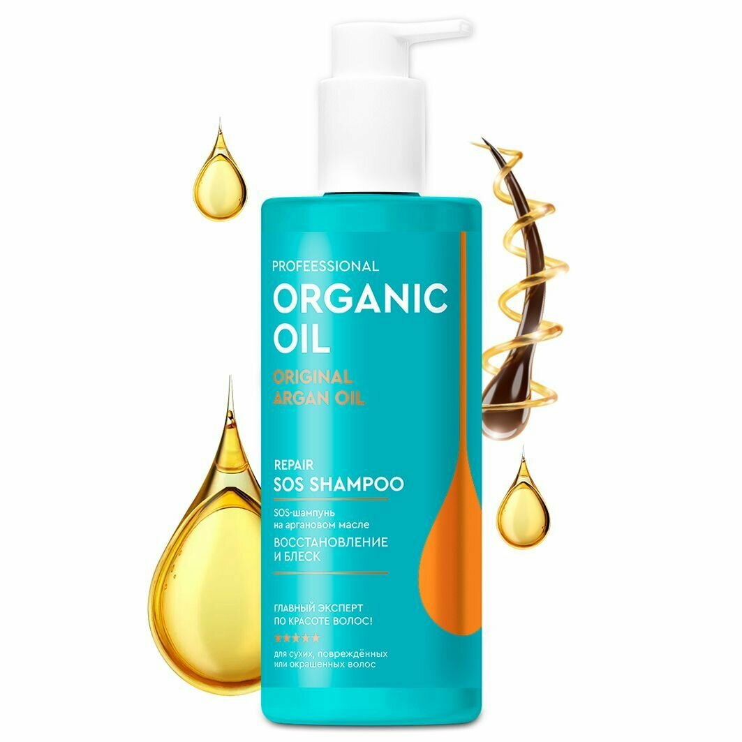 Шампунь для волос Organic Oil Professional SOS Восстановление и блеск на аргановом масле 240 мл
