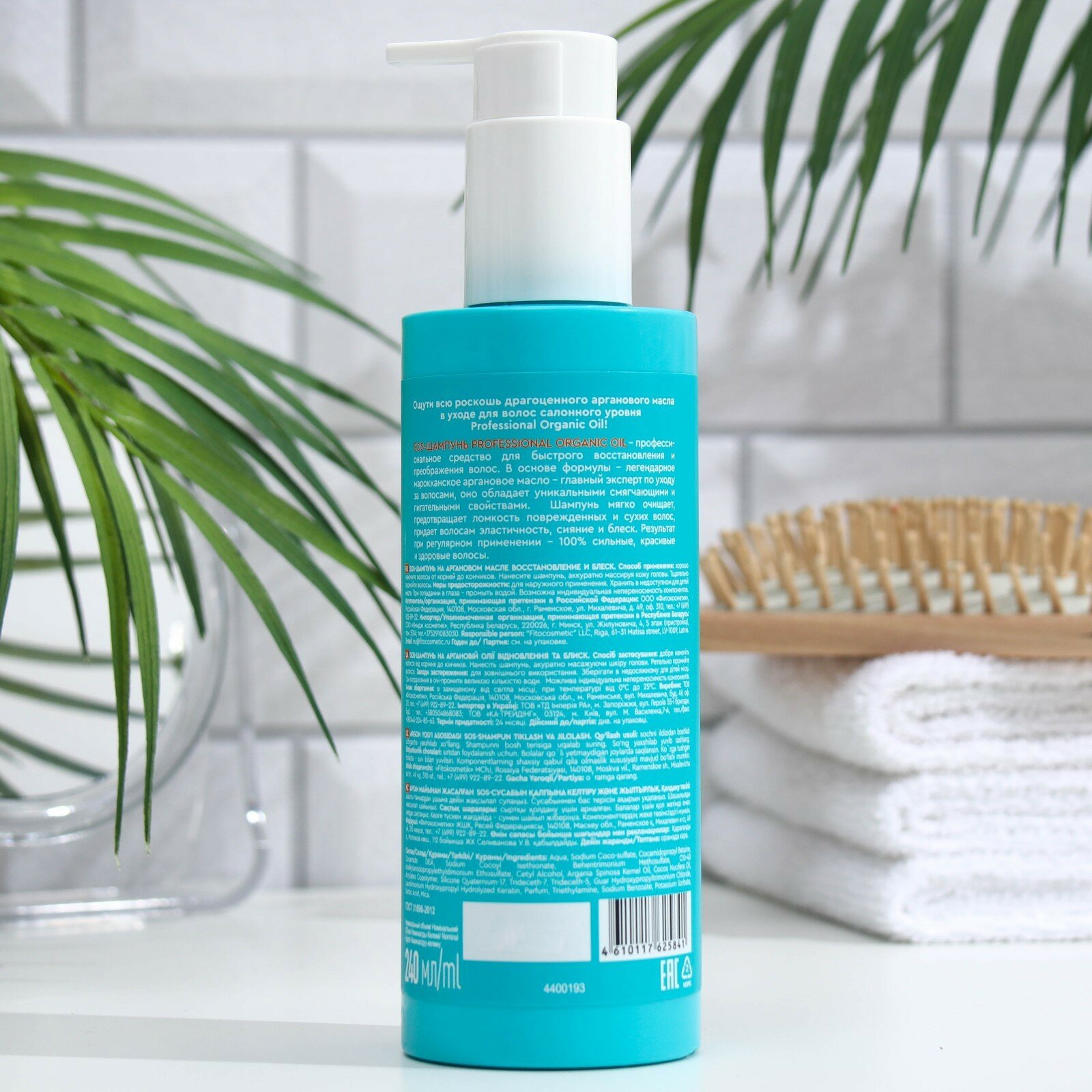 | Состав | Aqua, Sodium Сoco-Sulfate, Cocamidopropyl Betaine, Cocamide DEA, Sodium Cocoyl Isethionate, Behentrimonium Methosulfate, C10-40 Isoalkylamidopropylethyldimonium Ethosulfate, Cetyl Alcohol, Argania Spinosa Kernel Oil, Cocos Nucifera Oil, Acrylates Copolymer, Silicone Quaternium-17, Trideceth-7, Trideceth-5, Guar Hydroxypropyltrimonium Chloride, Laurdimonium Hydroxypropyl Hydrolyzed Keratin, Parfum, Triethylamine, Sodium Benzoate, Potassium Sorbate, Sorbic Acid, Mica. |