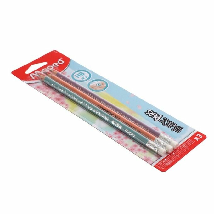Карандаш чернографитный из американской липы, с ластиком, треугольный НВ, корпус пастельных цветов, в блистере, 3 шт. Чернографитные карандаши Black peps pastel имеют треугольный корпус для лучшей эргономики. Ударопрочный грифель с ластиком. Эргономичный треугольный корпус. Легко точатся.