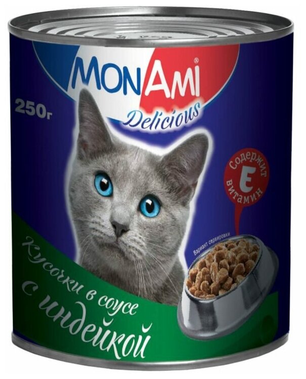Влажный корм для кошек Монами индейка в соусе 250 г