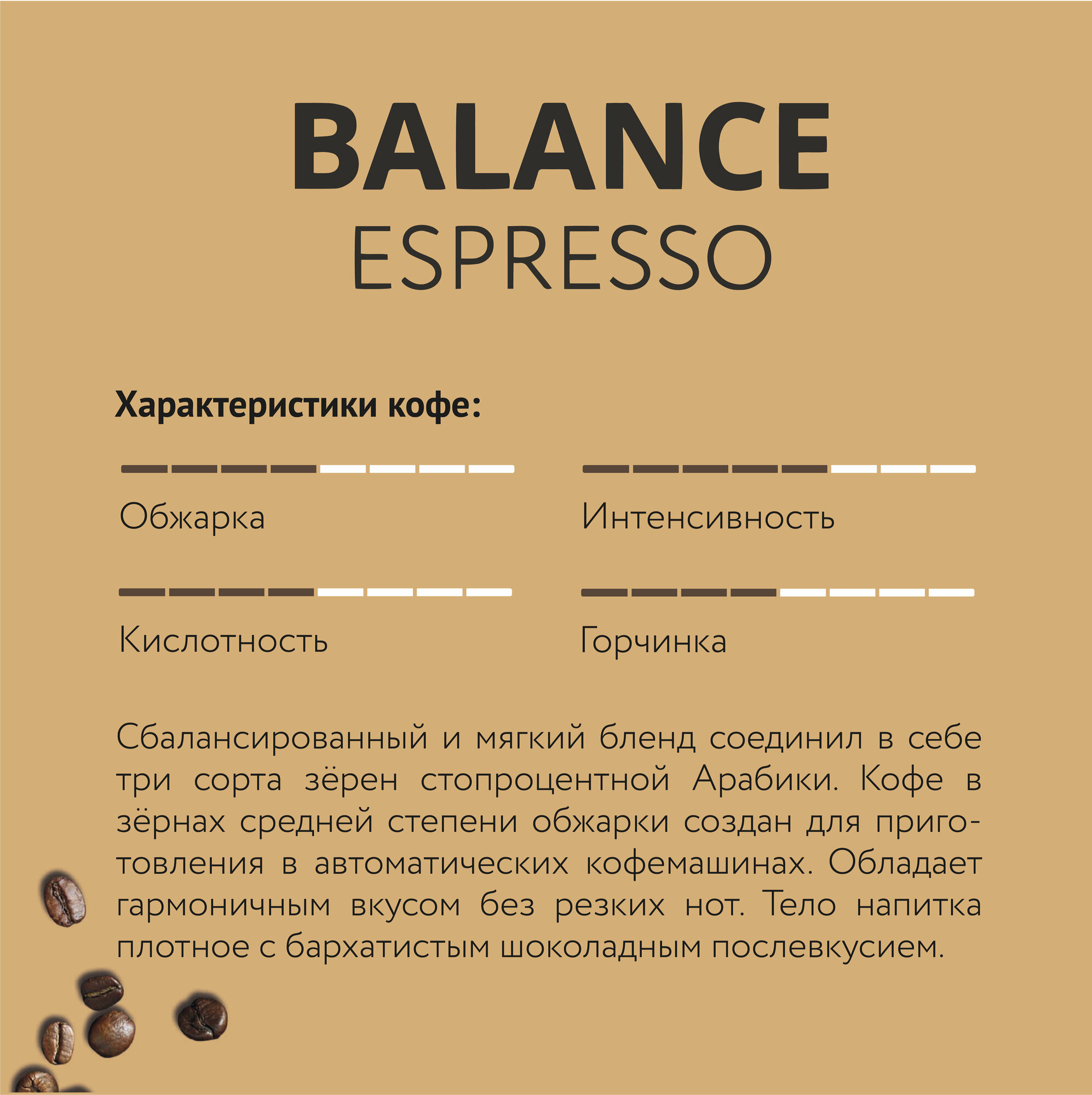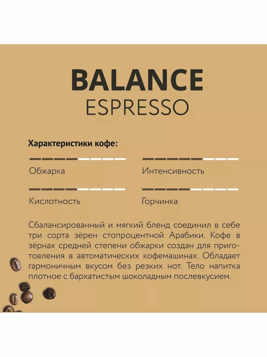 Сбалансированный и мягкий бленд соединил в себе три сорта зёрен стопроцентной Арабики. Кофе в зёрнах средней степени обжарки создан для приготовления в автоматических кофемашинах. Обладает гармоничным вкусом без резких нот. Тело напитка плотное с бархатистым шоколадным послевкусием.