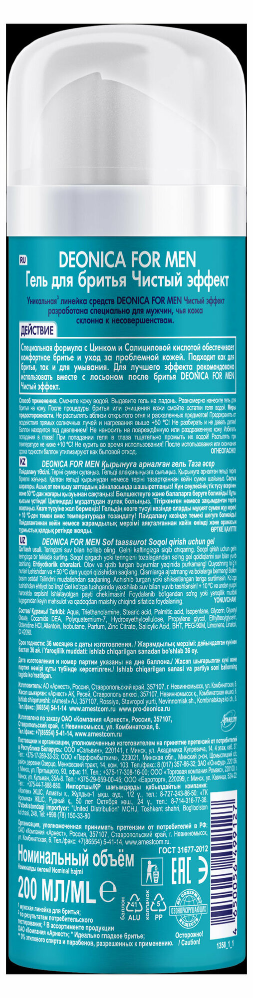 | Состав набора | Гель для бритья Деоника 200 мл - 1 шт |