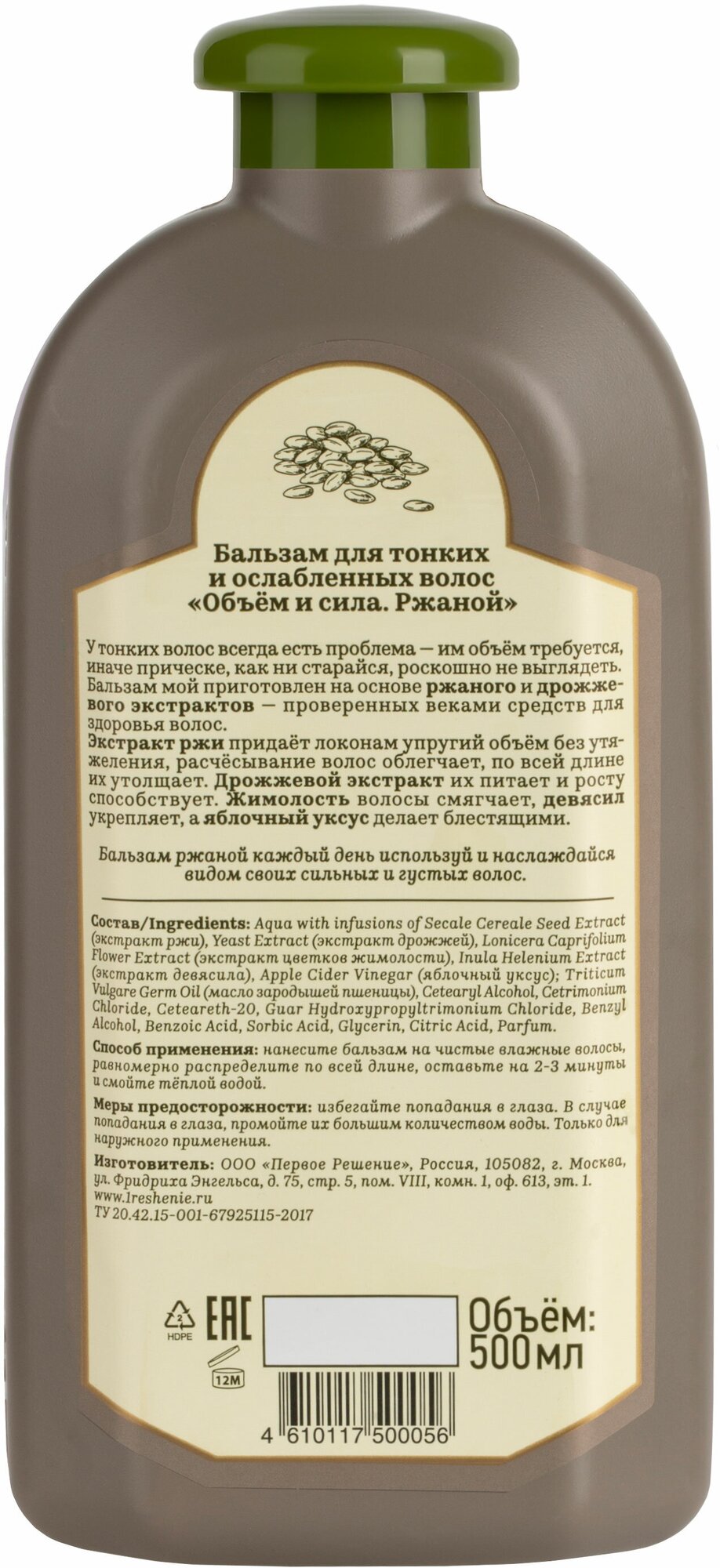Бальзам для волос Рецепты Бабушки Агафьи Сибирская Травница Объём и сила ржаной для тонких и ослабленных волос 500 мл