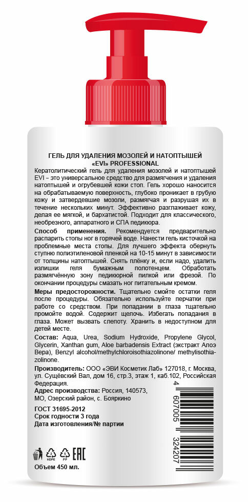 это универсальное средство для размягчения и удаления натоптышей и огрубевшей кожи стоп. Гель хорошо наносится на обрабатываемую поверхность, глубоко проникает в грубую кожу и затвердевшие мозоли, размягчая и разрушая их в течение нескольких минут. Эффективно разглаживает кожу, делая ее мягкой, и бархатистой. Подходит для классического, необрезного, аппаратного и СПА педикюра.