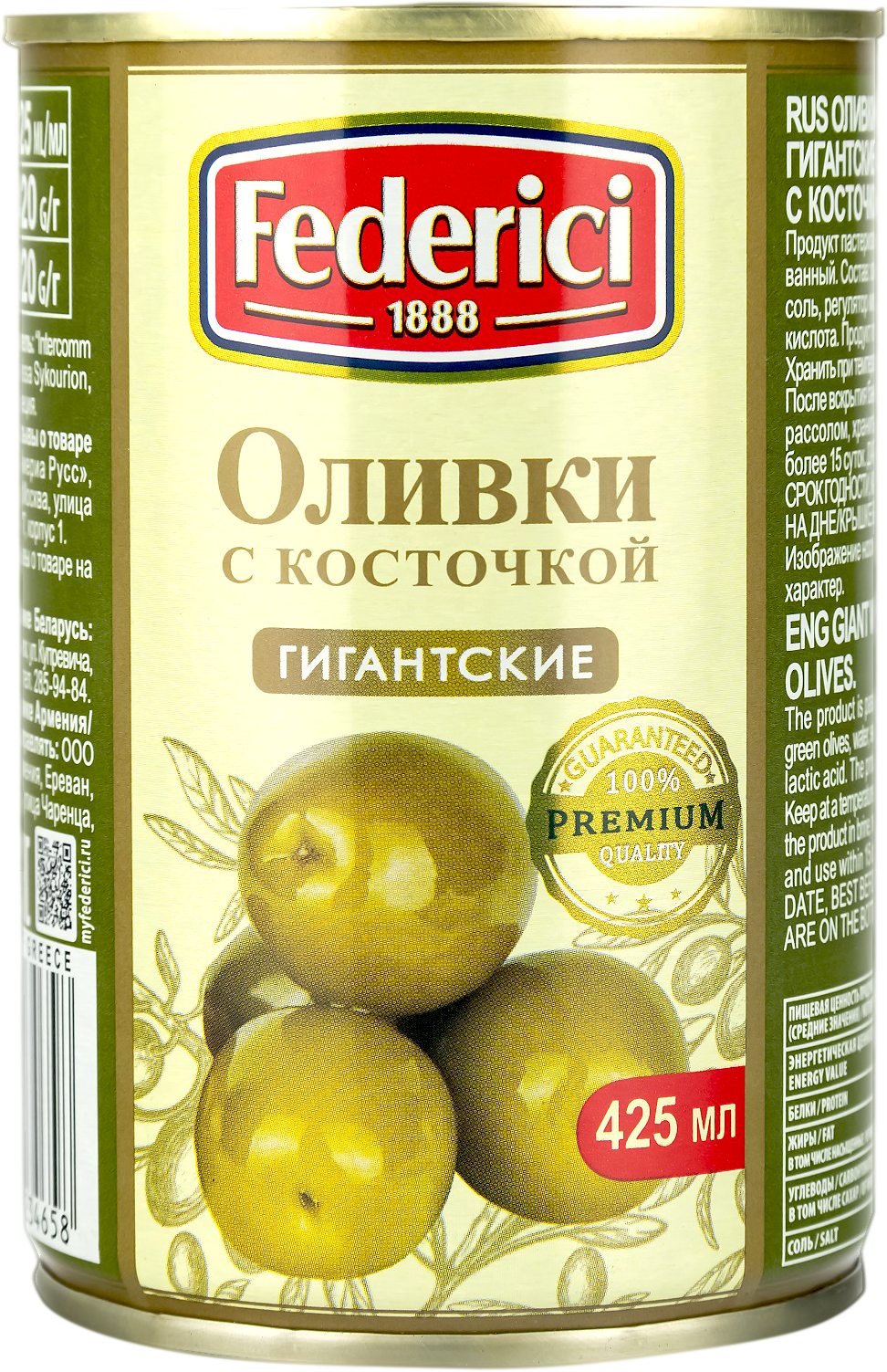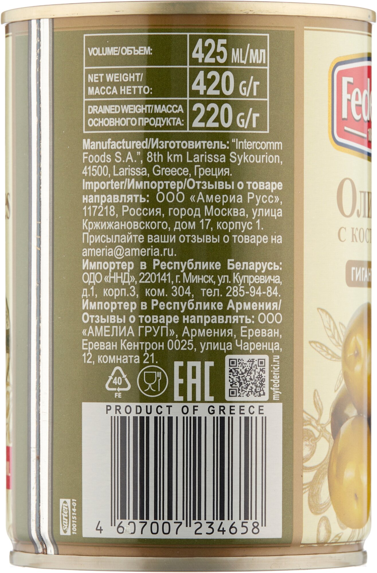 Гигантские оливки Federici с косточкой из солнечной Греции станут прекрасной закуской на любом столе.